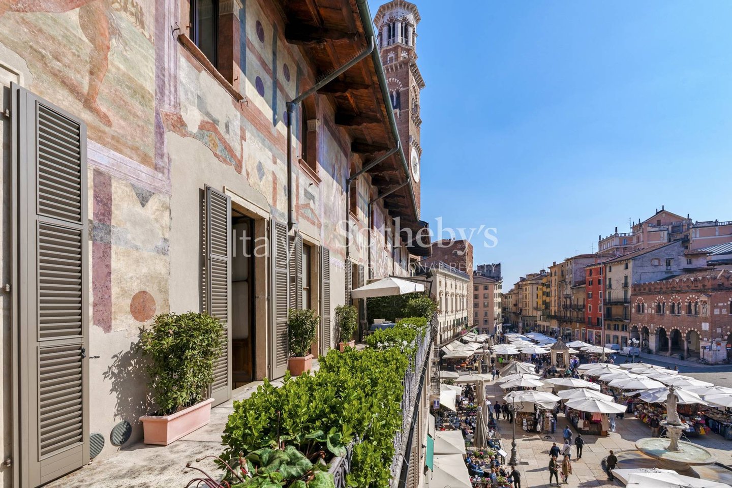 Im pulsierenden Herzen von Verona, direkt an der bezaubernden Piazza delle Erbe, befindet sich ein wahres architektonisches Juwel innerhalb der renommierten Case Mazzanti - einer der ältesten und faszinierendsten Palastanlagen der Stadt. Dieses außergewöhnliche Anwesen ist ein Meisterwerk der Geschichte und Kunst, dessen mit Fresken geschmückte Fassaden im 16. Jahrhundert vom Maler Alberto Cavalli, einem Schüler Giulio Romanos, gestaltet wurden. Sie trugen maßgeblich dazu bei, dass Verona als „Urbs Picta' - die „gemalte Stadt' - Berühmtheit erlangte.
