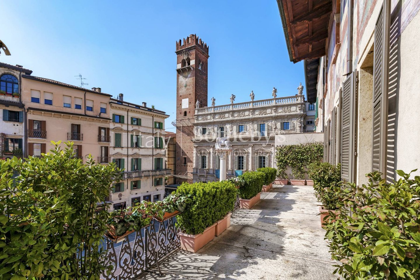 Im pulsierenden Herzen von Verona, direkt an der bezaubernden Piazza delle Erbe, befindet sich ein wahres architektonisches Juwel innerhalb der renommierten Case Mazzanti - einer der ältesten und faszinierendsten Palastanlagen der Stadt. Dieses