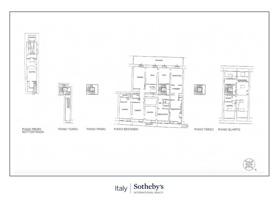Das Anwesen erstreckt sich über drei Ebenen - den zweiten Stock, ein charmantes Dachgeschoss im vierten Stock sowie einen historischen Keller - und verfügt über einen privaten, exklusiven Eingang mit eigenem Aufzug. Der zweite Stock bietet großzügige und elegante Wohnräume: ein imposanter Empfangsbereich, ein prächtiges Wohnzimmer, zwei weitere Salons, eine holzvertäfelte Bibliothek mit Kamin, ein Esszimmer, eine Küche und mit Marmor ausgestattete Bäder. Das Highlight dieser Ebene ist die atemberaubende Panoramaterrasse mit Blick auf die Piazza delle Erbe und die Wahrzeichen Veronas.