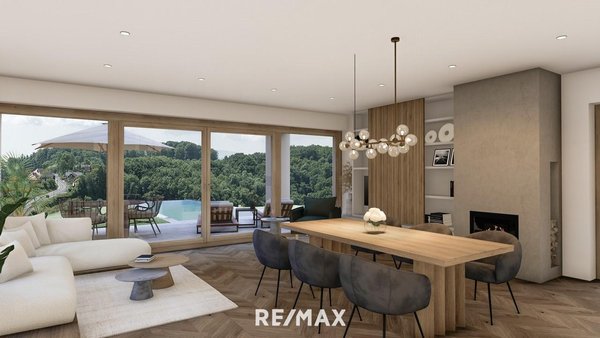 Offene und lichtdurchflutete Räume mit Raumhöhen bis zu 6 Metern geben ein großzügiges und zugleich behagliches Wohngefühl. Privatsphäre auf der Terrasse oder im eigenen Garten genießen, mit einem exklusiven Blick in die Natur und in die unvergleichliche südsteirische Hügellandschaft, macht das eigene Zuhause zum Kraftort.