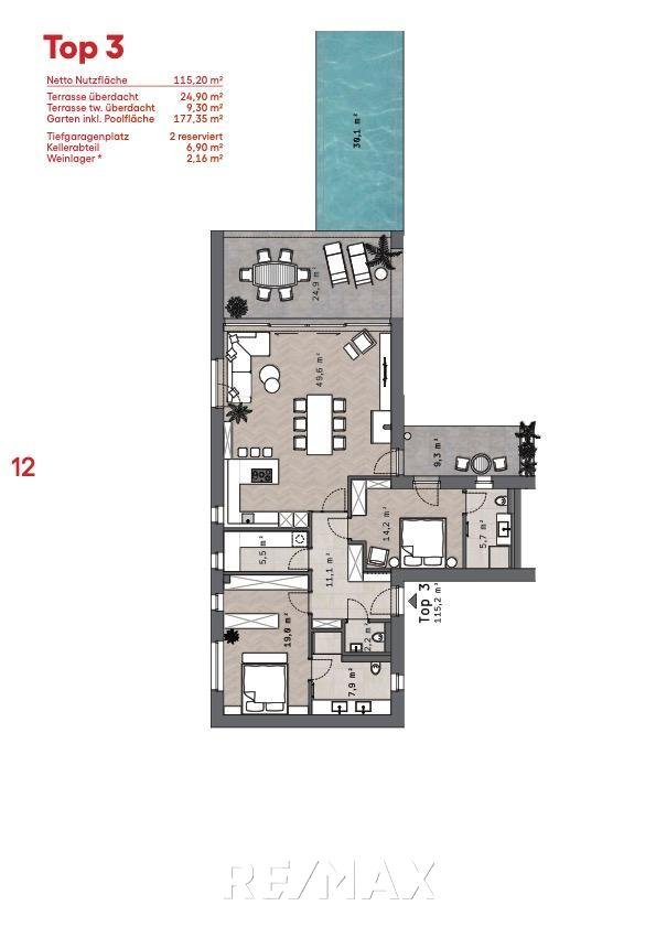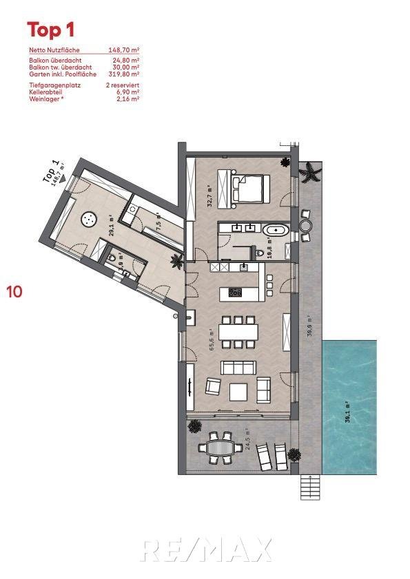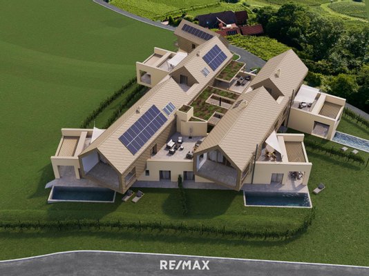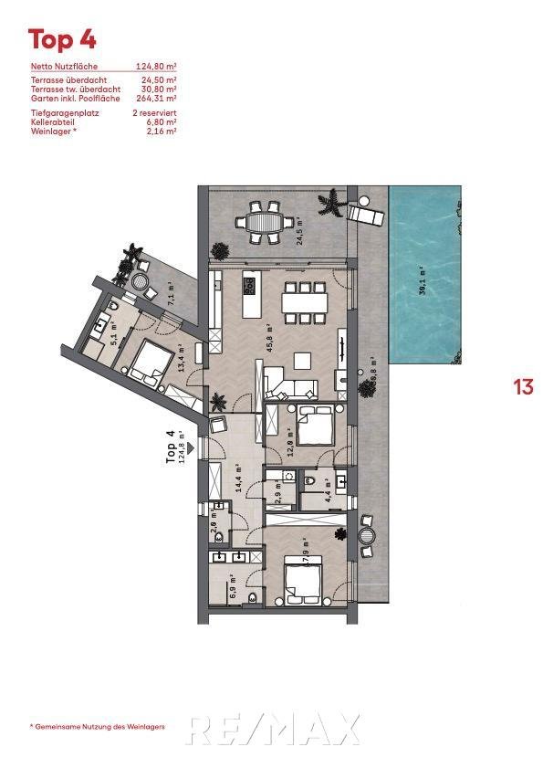 Bei den Wohnungen im Erdgeschoß 1, 3 & 4 besteht die Möglichkeit einen Pool zu errichten gemäß Gesamtkonzept der Architektur.