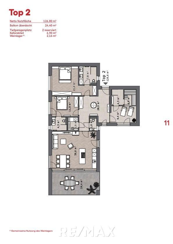 Im Preis enthalten: ein großzügiges Kellerabteil, ein gekühltes Weinlager für jede Wohnung, zwei Tiefgaragenplätze je Wohnung,