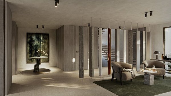 Ein exklusiver Wellnessbereich im Untergeschoß des Hauses bietet Entspannung pur mit einer Sauna, Whirlpool, Daybeds, einer Bar und einem Lichthof, der durch eine Schiebetür zugänglich ist. Ein Hauswirtschaftsraum, zwei Lagerräume und ein Technikraum schließen sich an.
