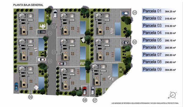 Die Grundstücke haben eine Größe von 286 m² - 364 m².