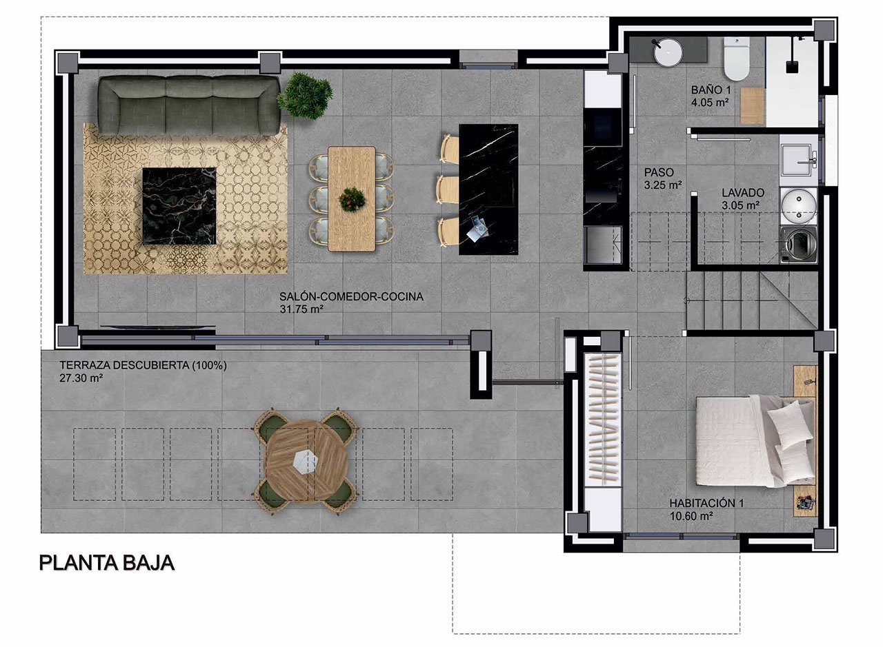 Die kleine Anlage liegt in der Gemeinde Rojales und besteht aus nur 9 eleganten Villen mit 3 Schlafzimmern, Privatpool.