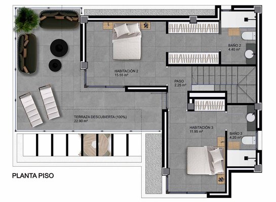 Diese eleganten Villen verfügen über eine konstruierte Fläche von ca. 136 m² (inklusive Terrassen) mit