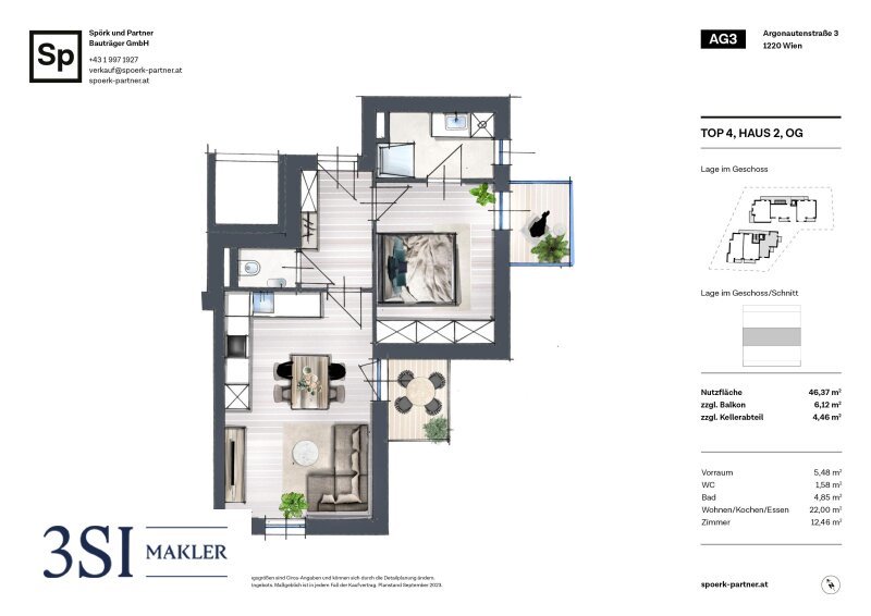 Das Wohnkonzept vereint durchdachte Grundrisse mit zeitgemäßem Komfort. Kleine bis mittelgroße Apartments mit Balkon, Terrasse oder Garten schaffen ein modernes, stilvolles Ambiente für anspruchsvolle Stadtbewohner. Dabei steht höchste Qualität im Mittelpunkt: Spörk & Partner setzt auf nachhaltige Bauweise, exzellente Energieeffizienz und eine ökologische Planung, um zukunftsorientierte Wohnräume zu schaffen.
