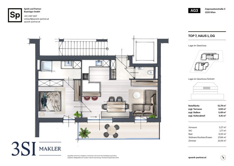 Das Wohnkonzept vereint durchdachte Grundrisse mit zeitgemäßem Komfort. Kleine bis mittelgroße Apartments mit Balkon, Terrasse oder Garten schaffen ein modernes, stilvolles Ambiente für anspruchsvolle Stadtbewohner. Dabei steht höchste Qualität im Mittelpunkt: Spörk & Partner setzt auf nachhaltige Bauweise, exzellente Energieeffizienz und eine ökologische Planung, um zukunftsorientierte Wohnräume zu schaffen.