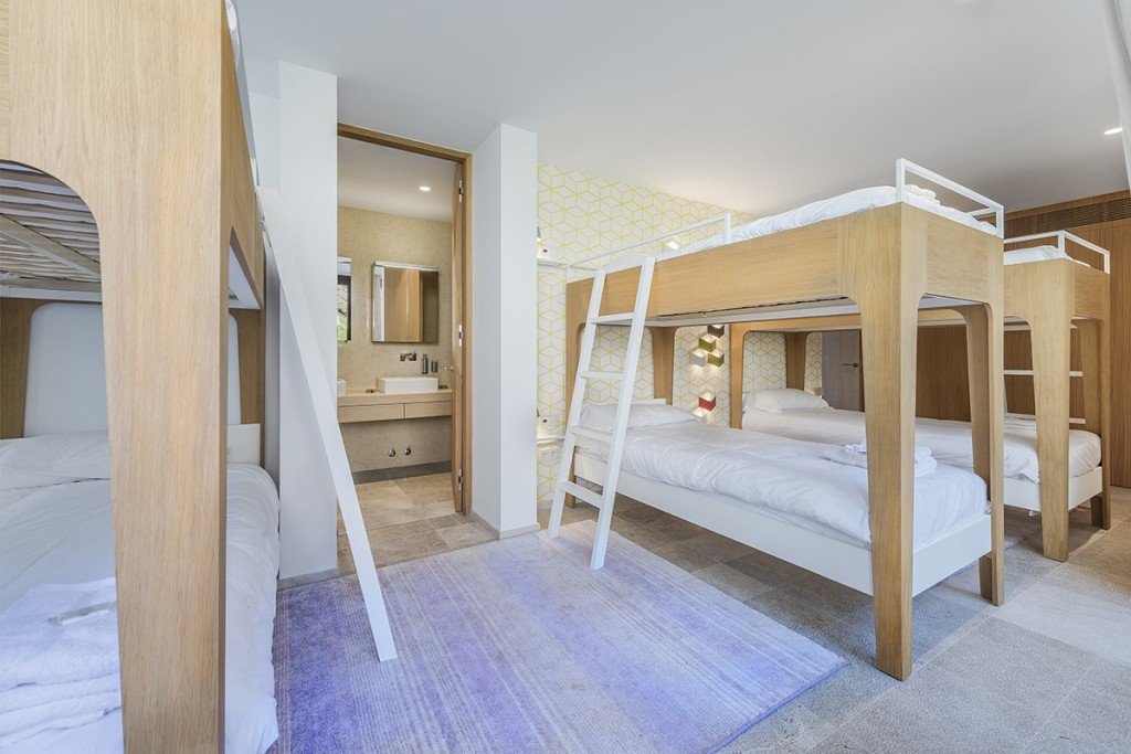 Auf der mittleren Ebene befinden sich vier weitere Doppelzimmer, die jeweils direkten Zugang zu einer großen Gemeinschaftsterrasse haben. Drei dieser Schlafzimmer verfügen über ein eigenes Bad, während das vierte über ein separates Bad verfügt.