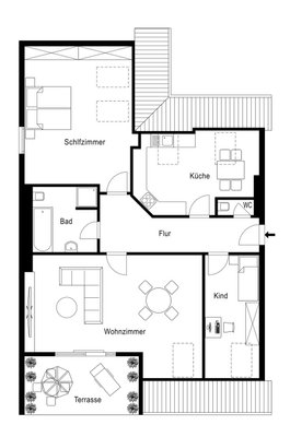 + Großzügige, neu geflieste Wohnküche mit Abluftanschluss