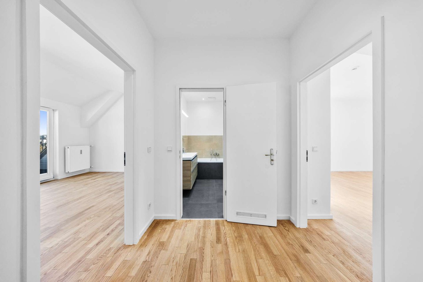 Diese bezugsfertige, komplett neu sanierte 3-Zimmer-Dachgeschosswohnung besticht durch ein einzigartiges Wohnambiente mit hohen Decken und viel Privatsphäre. Sie befindet sich im 5. Obergeschoss eines charmanten Altbaus aus dem Jahr 1900. Eine großzügige Raumhöhe von ca. 3,30 Metern sowie Velux-Dachfenster in allen Zimmern sorgen für viel Tageslicht. Die südostseitige Terrasse bietet einen unverbaubaren Ausblick und lädt zu entspannten Stunden im Freien ein.