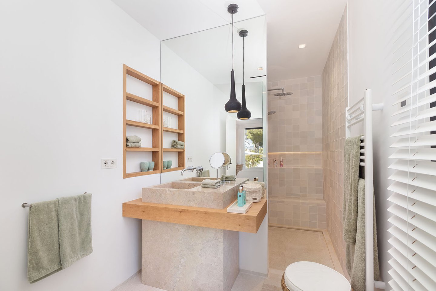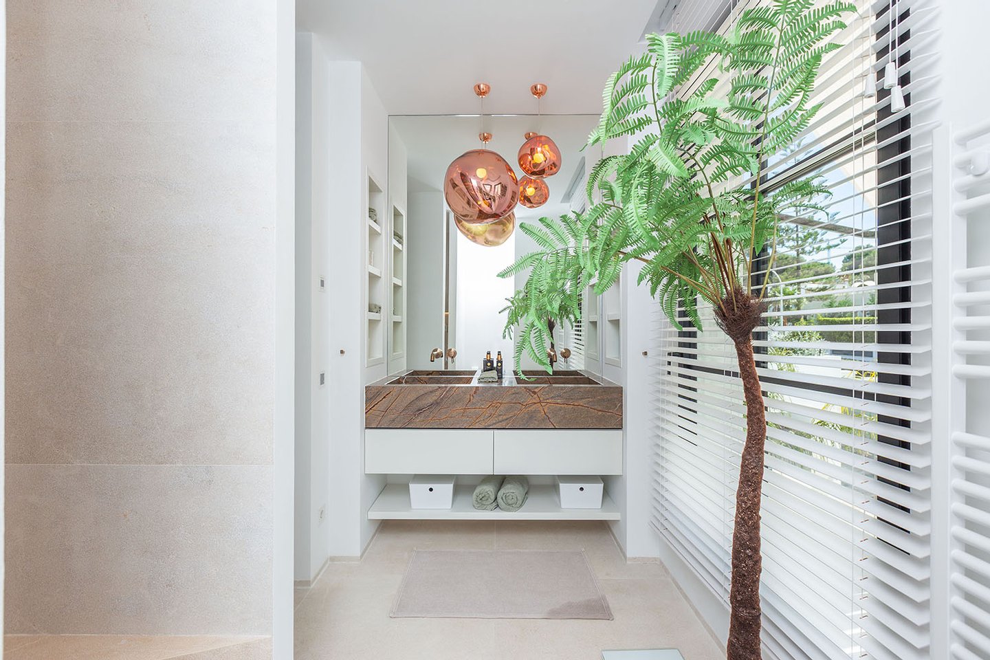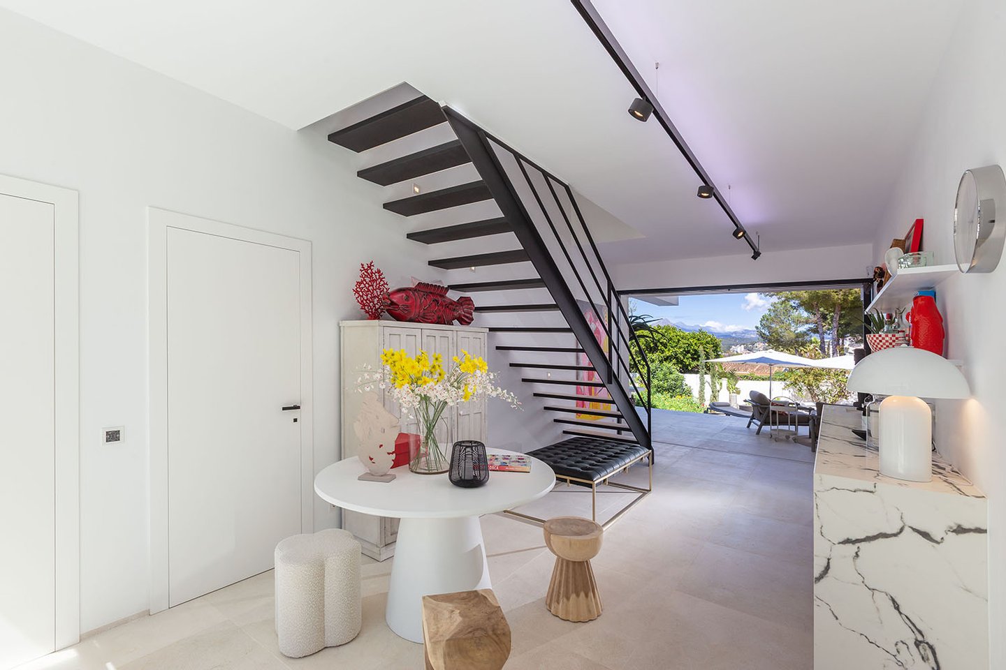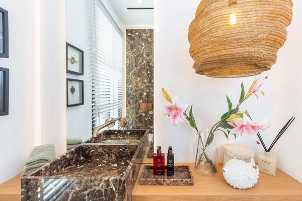 Auch der Außenbereich wurde mit großer Sorgfalt gestaltet. Die liebevoll gestalteten Terrassen, der automatisch bewässerte Garten mit BBQ-Bereich, der beheizte Salzwasserpool und die Außendusche bieten alles, was man an warmen Tagen braucht, um den Luxus und die Entspannung in vollen Zügen zu genießen.