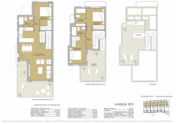 Diese modernen Villen verfügen über eine konstruierte Fläche von ca. 158 m² (inklusive Terrassen) mit