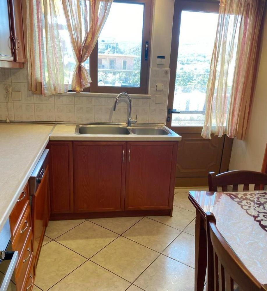 In Voukolies bei Chania steht eine geräumige und helle 100 m² große Wohnung im ersten Stock eines 2003 erbauten Mehrzweckgebäudes (Wohn- und Geschäftshaus) zum Verkauf. Die Wohnung verfügt über drei geräumige Schlafzimmer, ein geräumiges Wohnzimmer, eine separate Küche, Bad und WC und bietet eine ideale Raumaufteilung für Familien oder alle, die einen funktionalen und komfortablen Wohnraum suchen. Die Wohnung verfügt über eine unabhängige Ölheizung, Aluminiumfenster mit Doppelverglasung und Fliegengittern, Fliesenböden, Einbauschränke und einen Abstellraum. Für zusätzlichen Komfort sorgen ein Kamin und vier Klimaanlagen. Die Solaranlage sorgt für ausreichend Warmwasser. Die Wohnung ist voll möbliert und mit allen notwendigen Elektrogeräten ausgestattet. Sie ist lichtdurchflutet und bietet einen uneingeschränkten Blick auf die üppig grüne Landschaft. Der große Außenbereich bietet ausreichend Parkmöglichkeiten für mehrere Fahrzeuge. Sie ist die ideale Residenz für einen dauerhaften Wohnsitz oder eine Ferienunterkunft, da sie Ruhe und Lebensqualität an einem Ort bietet, der natürliche Schönheit und authentische kretische Gastfreundschaft vereint.