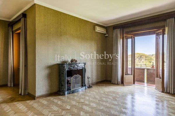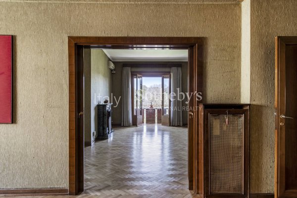 Die Wohnung erstreckt sich über zwei Hauptseiten des Gebäudes, beide mit großzügigen Balkonen, die das Gefühl von Weite und Kontinuität mit der grünen Umgebung der Villa Ada verstärken und malerische Ausblicke sowie eine friedliche Atmosphäre bieten. Zur Wohnung gehört ein überdachter Parkplatz, eine seltene Ausstattung in diesem Teil der Stadt. Die monatlichen Nebenkosten belaufen sich auf etwa 4.500 € jährlich. Die Heizung ist zentral mit Zähler. Diese Immobilie stellt eine prestigeträchtige Wohnlösung für diejenigen dar, die in einem privaten Umfeld leben möchten, umgeben von Grün, ohne auf die zentrale Lage und die Annehmlichkeiten des Stadtteils zu verzichten.