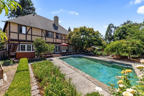 Die perfekte Kombination aus Landleben und Eleganz. Das Haus liegt inmitten von Gärten voller Farben. Genießen Sie die Ruhe, die frische Luft, die Vögel, die im Brunnen spielen. So eine seltene Gelegenheit, einen Hektar reiner Freude zu besitzen. Das Haus wurde im Laufe der Jahre liebevoll gestaltet und modernisiert, wobei die zweite Etage 1992 hinzugefügt wurde. Sie werden die europäischen architektonischen Elemente zu schätzen wissen, von der abgeschrägten Glastür und den importierten Eisenbeschlägen bis hin zu den schönen dekorativen Deckenplatten in der Küche und der Vertäfelung im Treppenhaus. Französische Türen öffnen sich zum hinteren Deck und zum Pool von den Ess-, Familien- und Gästezimmern für den Lebensstil im Innen- und Außenbereich. Das sonnendurchflutete Treppenhaus führt hinauf in das erstaunlichste Familienzimmer mit gewölbter Decke und so viel natürlichem Licht. Es trennt die primäre Suite von einem großen Gästezimmer oder Studio mit viel Stauraum. Fenstertüren und zwei Balkone mit herrlichem Blick auf den Garten. Die riesige Hauptsuite verfügt über eine gewölbte Balkendecke und Gartenblick. Im Vorgarten gibt es so viele Orte, an denen man sich unterhalten oder einfach nur entspannen kann. Obstbäume, Blumen und ein begleitgepflanzter Gemüsegarten, ein Gewächshaus mit Zitrusbäumen und der malerische Seerosenteich. Weitere tolle Ausstattungsmerkmale sind die übergroße Garage mit EV-Ladegerät, Abstellraum und Gartenhaus.