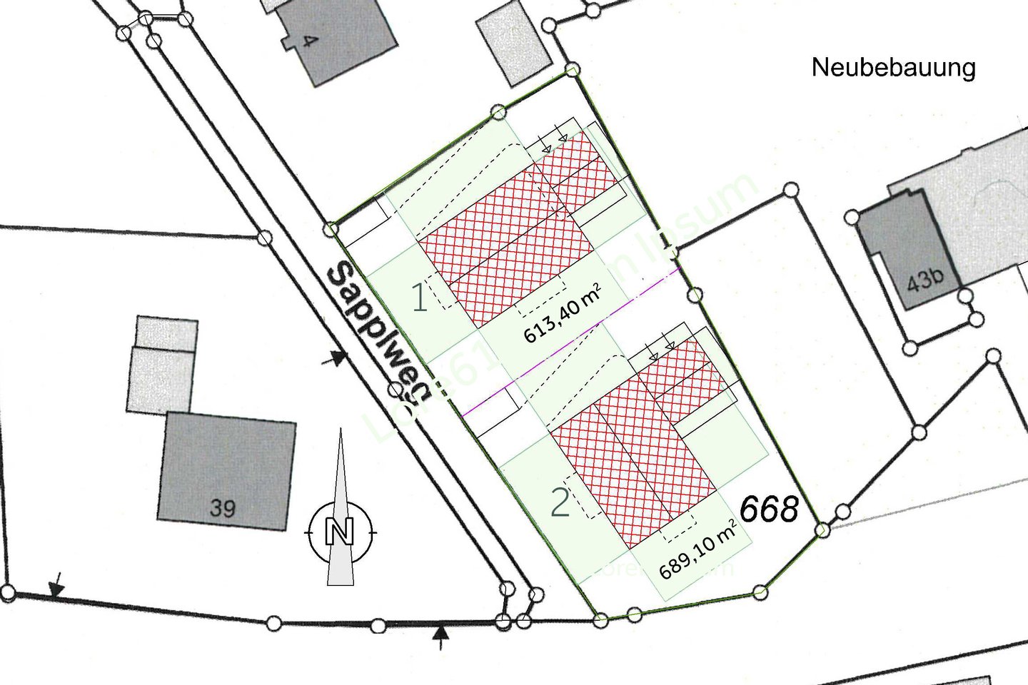 • Grundstück 1: ca. 613,40 m² - (Nord)