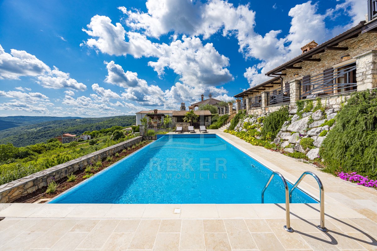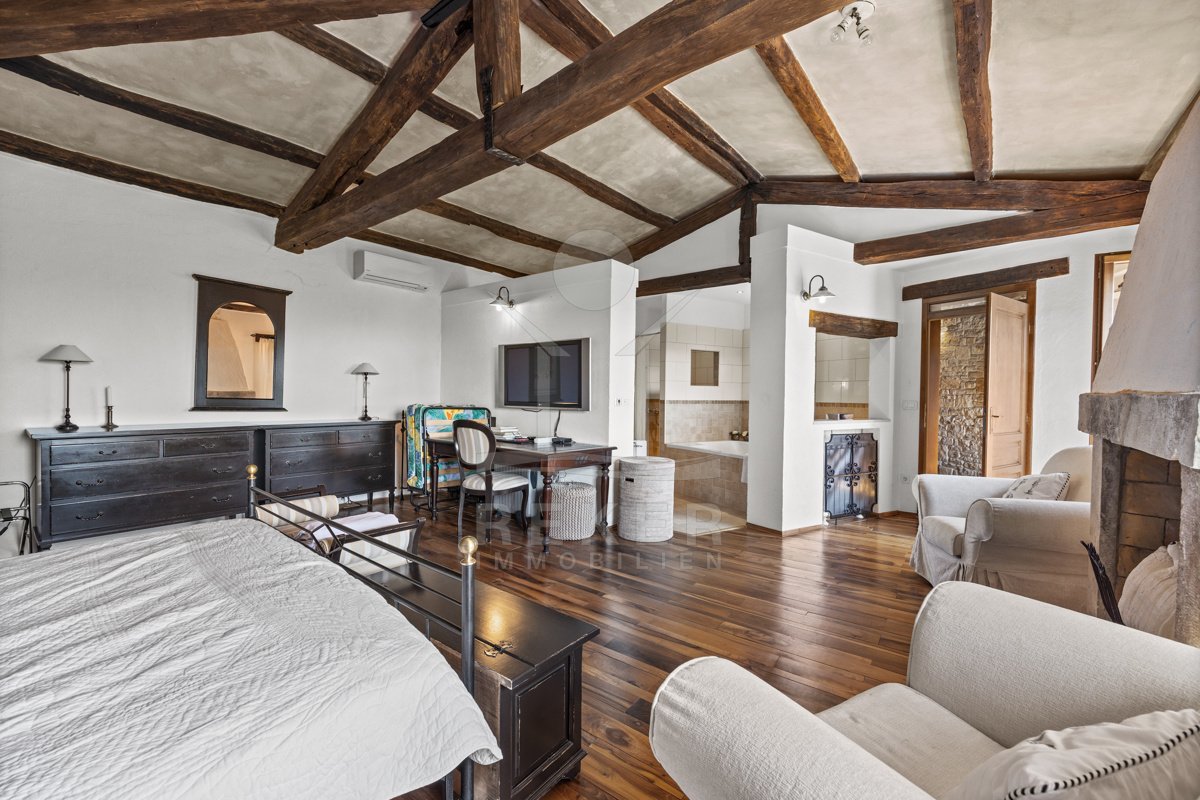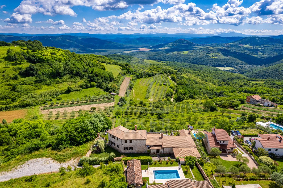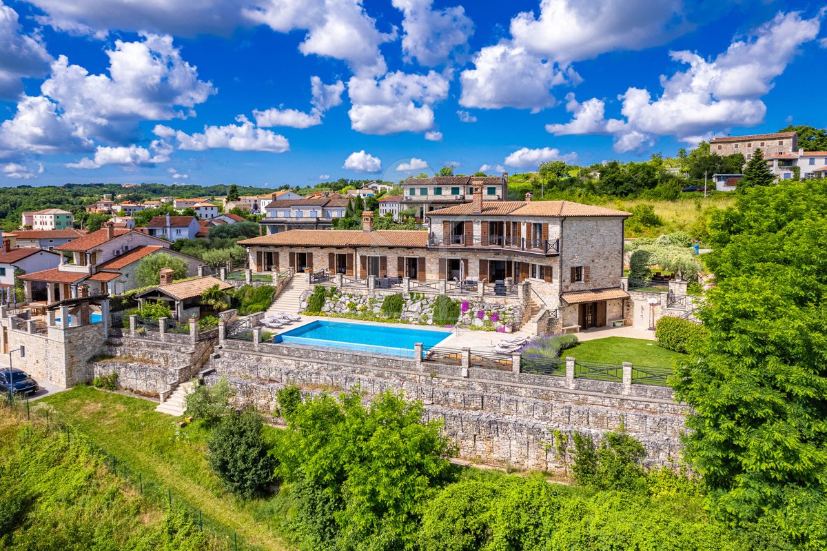 Grünes Glück trifft auf rustikale Eleganz: Großzügige Räume, 4 Schlafzimmer mit Bad en suite, edle Materialien und eine Outdoor-Oase mit Pool und Pavillon laden ein zum Entschleunigen – mitten in der Natur Istriens.