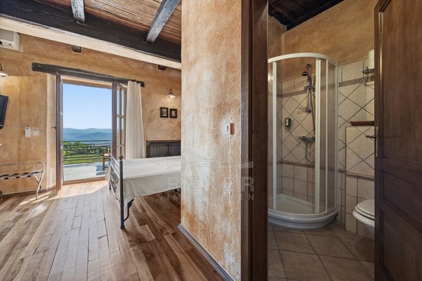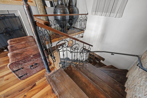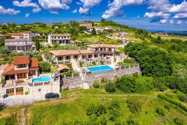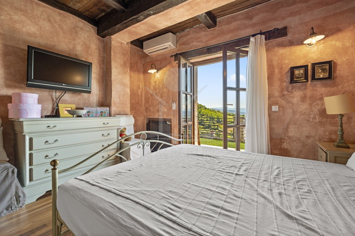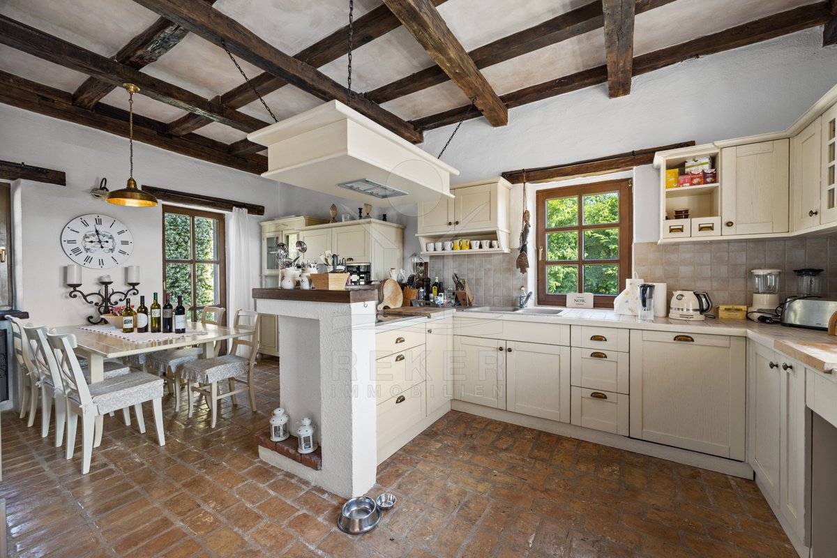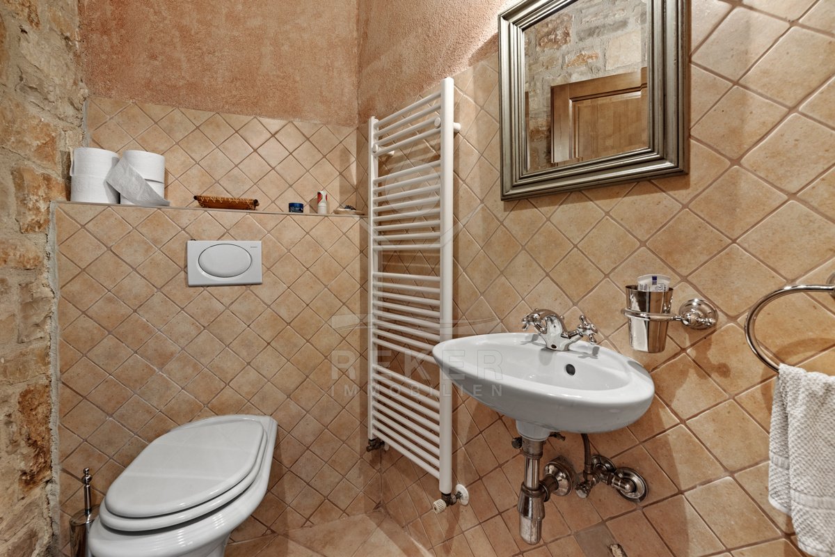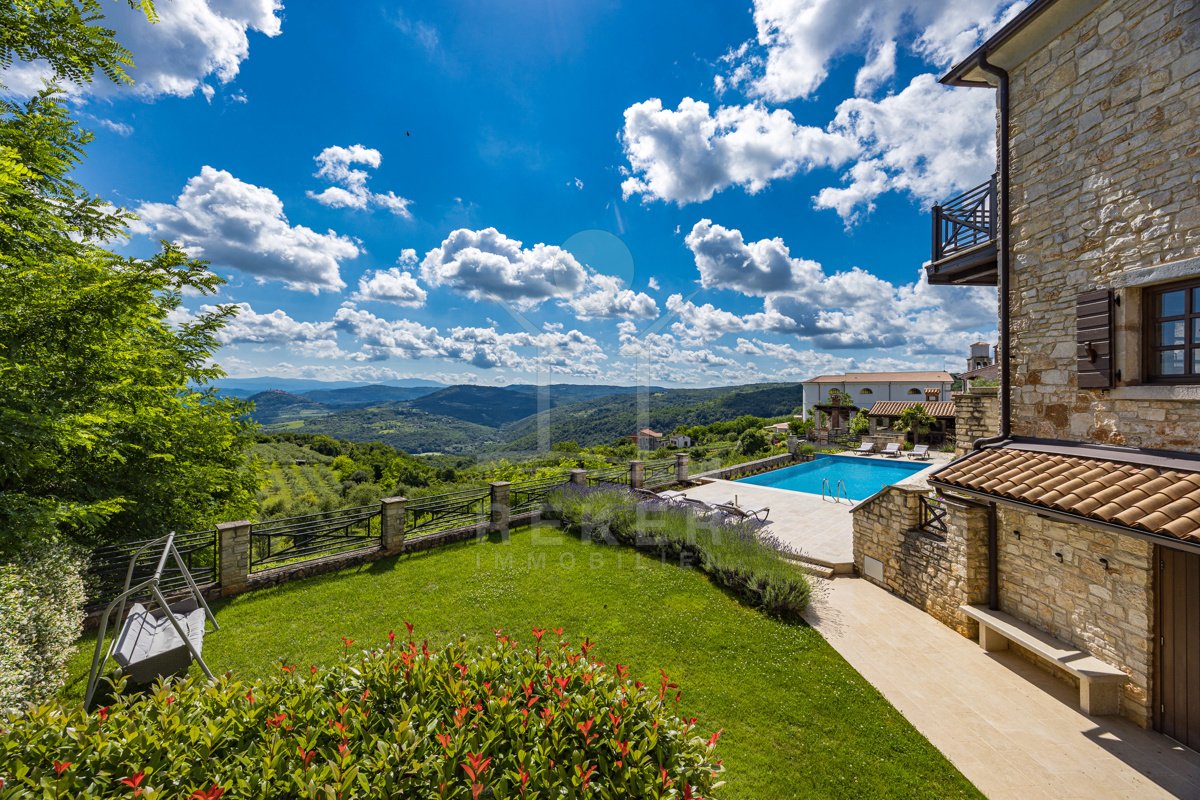 Grünes Glück trifft auf rustikale Eleganz: Großzügige Räume, 4 Schlafzimmer mit Bad en suite, edle Materialien und eine Outdoor-Oase mit Pool und Pavillon laden ein zum Entschleunigen – mitten in der Natur Istriens.