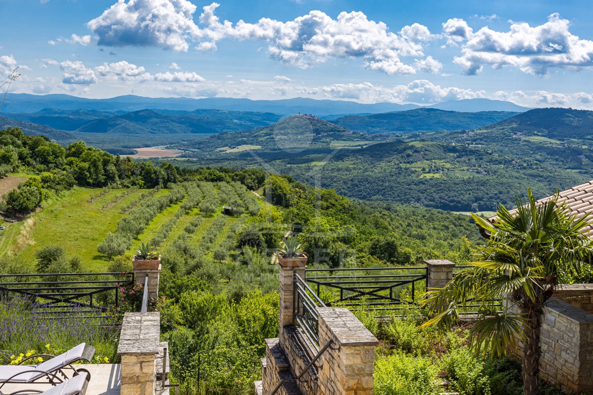 Viel Ruhe, viel Grün, viel Blick: Diese freistehende Steinvilla in Vižinada bringt alles mit, was man sich von einem Zuhause in Istrien wünscht. Das kleine Dorf liegt auf einem Hügel, umgeben von Natur und sanften Weinbergen. In der Nachbarschaft?