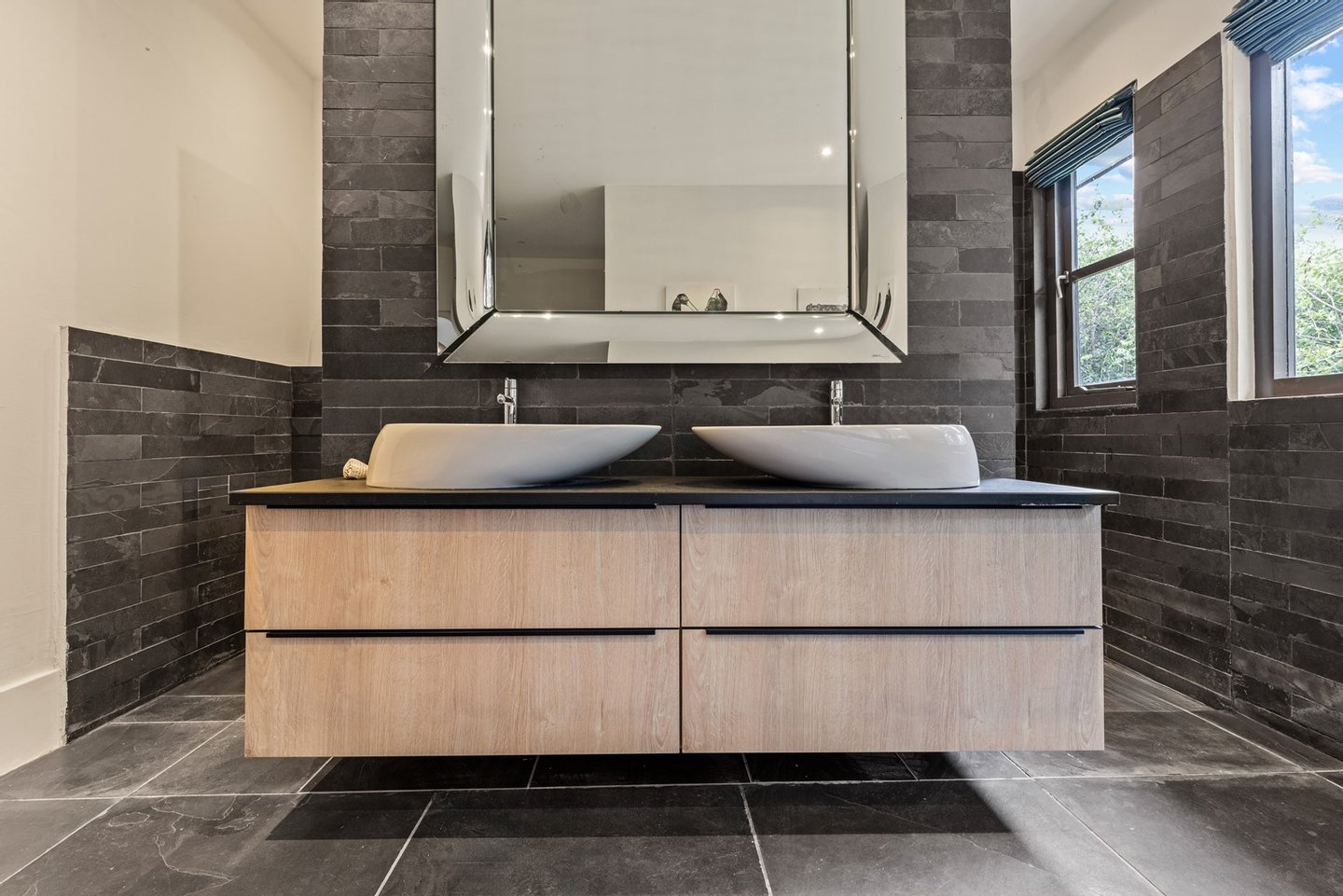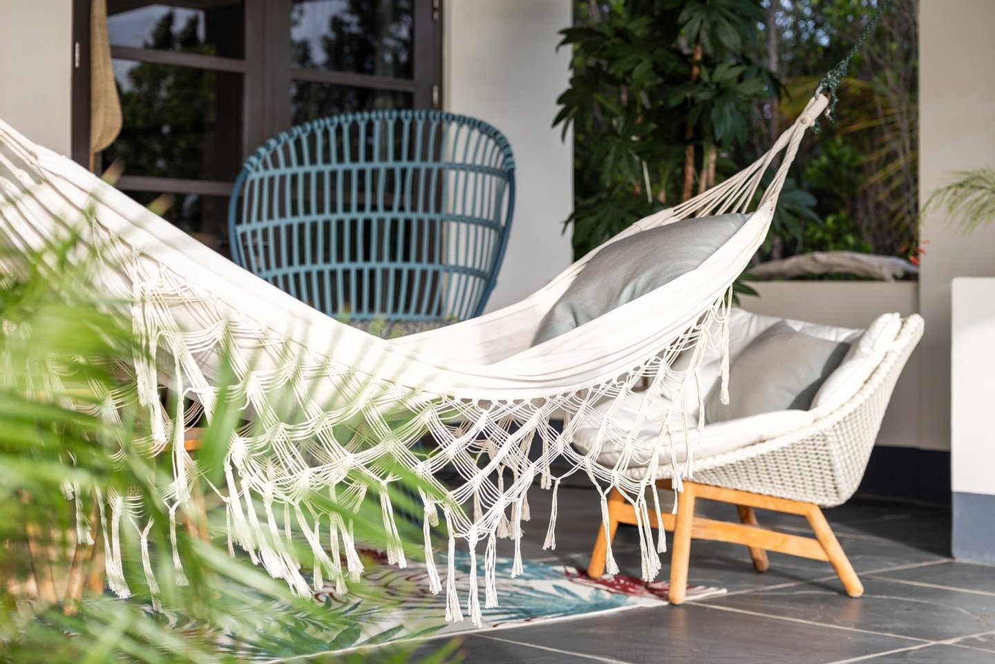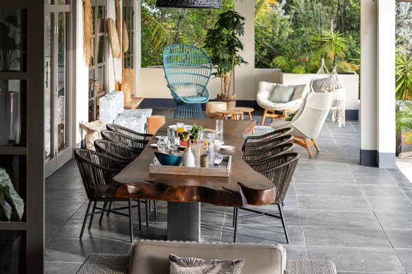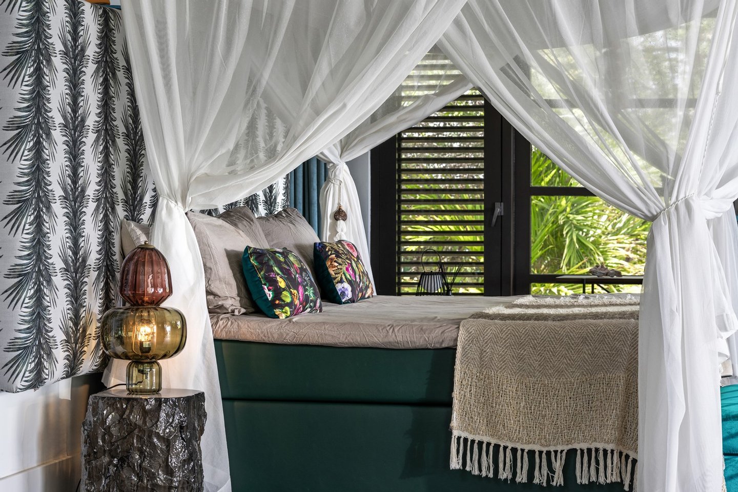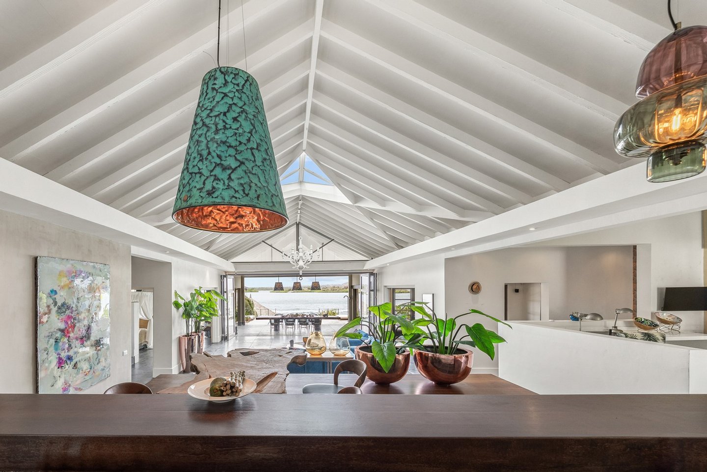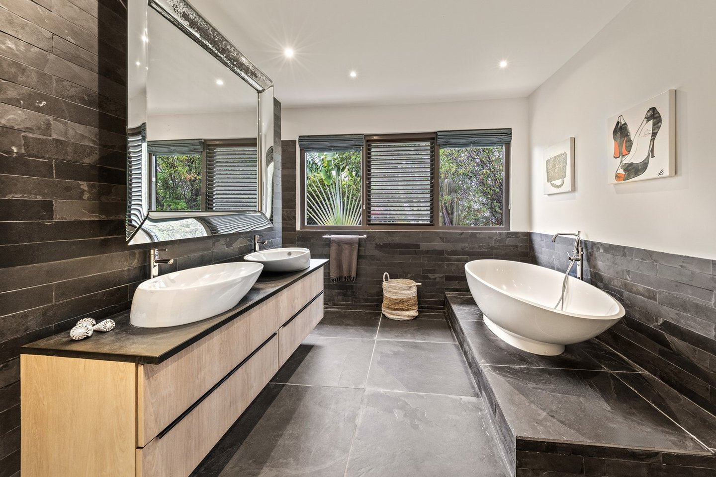 Diese opulente Villa befindet sich im geschlossenen Resort Santa Barbara Plantation-Curaçao am Ufer des Spanish Water. Der Privatstrand und das Dock sind nicht nur eine willkommene Ergänzung, sondern auch eine einzigartige Ergänzung zu den luxuriösen Wohneinrichtungen. Seru Boca Estate ist eine exklusive Wohnanlage in einer der sichersten Lagen auf Curaçao, die professionelle Sicherheit bietet, auch auf dem Wasser. Wassersportarten sind in dieser Region leicht zugänglich, was sie neben dem Golfen zu einem beliebten Zeitvertreib macht. Das ist keine Überraschung, denn das Resort beherbergt den Pete Dye Old Quarry Golf Course, der als der schönste Golfplatz der Karibik gefeiert wurde. Diese Villa ist ein wahres Juwel, in dem alle Ihre Wohnträume wahr werden. Es garantiert vollkommene Ruhe, Entspannung und Genuss. Der herrschaftliche, exklusive Charakter der Villa wird durch ihre symmetrische Architektur unterstrichen. In dem Moment, in dem Sie den pulsierenden Eingang betreten, ist es offensichtlich, dass Raum, Ruhe, Gemütlichkeit und Farbe perfekt miteinander harmonieren. Die Wand im Foyer ist mit bunten Dschungeltapeten geschmückt, die Möbel und Accessoires in den anderen Räumen sind in verschiedenen warmen Tönen gestaltet. Der Kontrast mit der ruhigen Basis aus hellen Farbtönen schafft ein ruhiges und komfortables Ambiente. Überall in der Villa werden Sie die Schieferfliesenböden, die weiß verputzten Wände und die passenden Holztüren bemerken. Dieses atemberaubende Haus verfügt außerdem über 6 Schlafzimmer, 5 Badezimmer, eine Palapa und eine Außenküche. Dank der Verwendung hochwertiger Materialien, verspielter Architektur, luxuriöser Ausstattung und zahlreicher nachhaltiger Ausstattungsmerkmale harmoniert diese sensationelle Villa perfekt mit ihrer Umgebung. Mit allen Einrichtungen in Reichweite ist dies ein privates Paradies an einem der schönsten Orte von Curaçao. Wenn Sie jemals einen Tapetenwechsel erleben möchten, bietet Santa Barbara eine Fülle von Sport- und Freizeitaktivitäten, darunter ein exklusives Restaurant mit verlockenden Gerichten. Aus dem Leben wie ein König in Frankreich ist geworden: Leben wie ein König auf Curaçao! Baustatus/Grundstück Merkmale: Baujahr: 2020 Baustil: Modern mit Split-Level-Elementen Wohnfläche: 769 m² Grundstücksfläche: 2820 m² Dach: Südeuropäische Dachziegel und Sonnenkollektoren Holzfensterrahmen 6 Schlafzimmer 5 Badezimmer 1 Gäste-WC Großer Infinity-Pool Privatstrand und Dock Außenküche Palapa Technische und praktische Details: 43 Sonnenkollektoren High-End-Geräte Home-Soundsystem Deckenventilatoren Eingebaute Beleuchtung Sicherheitssystem Moskitovernebelungssystem Renovierungen: Sowohl die Innen- als auch die Außenpflege sind auf dem neuesten Stand. In den letzten Jahren wurde die Villa in Etappen renoviert. Die Terrasse, die ursprünglich mehrere Ebenen hatte und auf der sich der Pool einen Meter höher befand, wurde eingeebnet. Die hölzernen Terrassenbalken wurden durch Beton ersetzt, und der Pool erhielt eine Verjüngungskur. Der Hauswirtschaftsraum wurde modernisiert und die Küchenwand wurde versetzt, um mehr praktischen Platz zu schaffen. Der Bar- und Loungebereich erhielt ein Dach. Darüber hinaus wurden die Sanitär- und Elektroinstallationen modernisiert und ein Teil des felsigen Bereichs in einen Privatstrand umgewandelt. Der Standort und Witterungseinflüsse wie Sonne, Schatten und Wind wurden bei der Sanierung sorgfältig berücksichtigt. Die gesamte Villa und das Grundstück sind auf dem neuesten Stand. Eingang: Decke mit kunstvollen Linien Wenn Sie durch das elektrische Tor fahren, passieren Sie eine von Palmen gesäumte, gepflasterte Einfahrt. Willkommen in den niederländischen Tropen! Auf der linken Seite befindet sich eine Garage mit Platz für zwei Autos und einen Golfwagen, während auf der anderen Seite des Weges zwei weitere Autos unter einem Schattentuch geparkt werden können. Die erste von vielen Terrassen befindet sich links von der Eingangsveranda. Beim Betreten der Villa befinden Sie sich auf der Veranda, wo große Fenster den Raum mit Licht durchfluten. Die markante Deckenkonstruktion, die sich über das gesamte Stockwerk bis zum Dach des Hauses erstreckt, sticht sofort ins Auge, mit einem kunstvollen Zusammenspiel von Holzbalken und -paneelen. Jeder Raum wird praktisch genutzt: Eine große Wand, die mit leuchtenden Dschungeltapeten bedeckt ist, schafft sofort ein heimeliges Gefühl. Über das Foyer gelangt man über Flure links und rechts der Tropenwand in den Wohnbereich und die luxuriöse offene Küche. Wenn Sie vom Foyer aus durch den linken Flur gehen, finden Sie auf der linken Seite einen geräumigen Abstellraum mit viel Stauraum und Platz für eine Waschmaschine und einen Trockner. Etwas weiter öffnet sich eine Nische mit zwei Türen, die zu einem Toilettenraum (links) mit hängender Toilette, Urinal und Waschbecken führt. Hinter der rechten Tür führt eine kleine Treppe zu einem der schönen Schlafzimmer mit eigenem Bad. En-suite Bathroom: Ein ruhiger Blick aus der Badewanne Im überraschend großen en-suite Badezimmer auf der Wohnetage, das von Deckenstrahlern beleuchtet wird, können Sie sich in ultimativer Entspannung und Selbstfürsorge verwöhnen. Das Badezimmer verfügt über eine freistehende Wand mit Doppelwaschbecken und einem Waschtischunterschrank. Hinter der Wand befindet sich ein begehbarer Toilettenbereich mit Hängetoilette und Bidet sowie ein begehbarer Duschbereich. Der tropische Garten, der durch das Fenster zu sehen ist, erinnert an ein wunderschön gerahmtes Stillleben. Sind Sie eher ein Badeliebhaber? Dieser Wunsch wird mit der schicken freistehenden Badewanne auf der Plattform erfüllt, komplett mit Wandarmatur und Sprüher. Eine lange, praktische Arbeitsplatte entlang der Wand des Raums eignet sich perfekt zum Falten von Handtüchern und Kleidung, die im extra geschlossenen Schrank gegenüber verstaut werden können. Hauptschlafzimmer: