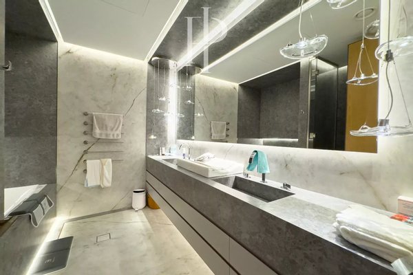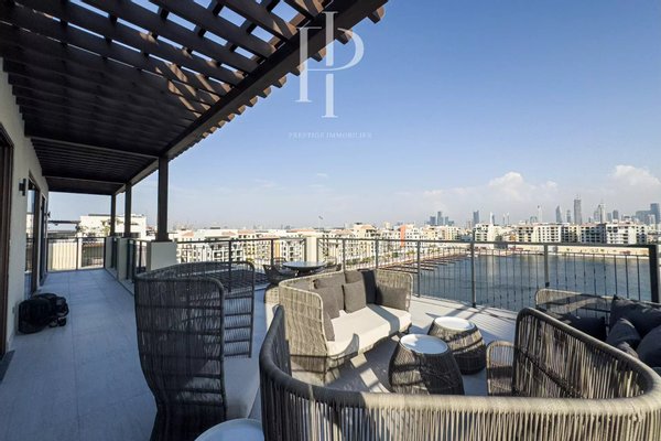 Die Wohnung verfügt über eine geräumige Außenterrasse mit herrlichem Blick auf das Wasser, die den Bewohnern eine ruhige und fröhliche Atmosphäre bietet. Die umliegenden Grünflächen sorgen für zusätzliche Privatsphäre und Komfort und machen es zu einem unverwechselbaren Rückzugsort in der Stadt.