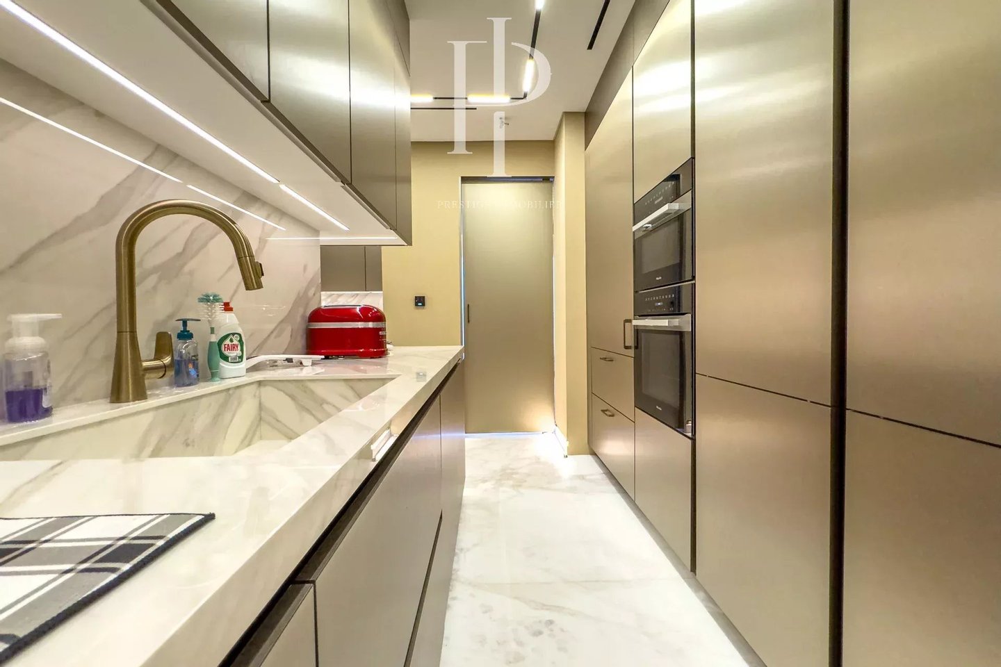Neben der idealen Lage bietet diese Wohnung alle modernen Annehmlichkeiten, die ein anspruchsvoller Käufer erwarten kann. Die Küche und die zentrale Klimaanlage sorgen für ein modernes und komfortables Leben, während offene Sitzbereiche ideal für soziale Interaktion und Unterhaltung sind.