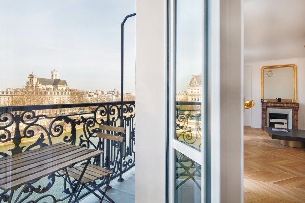 Quai aux Fleurs, im 5. Stock (6. U.S.) eines Eckgebäudes mit einem Aufzug für sechs Personen, einem prächtigen, hervorragend renovierten, 128 m² großen (1.378 Quadratfuß) Wohnung mit umlaufendem Balkon und dreifacher Belichtung, die einen