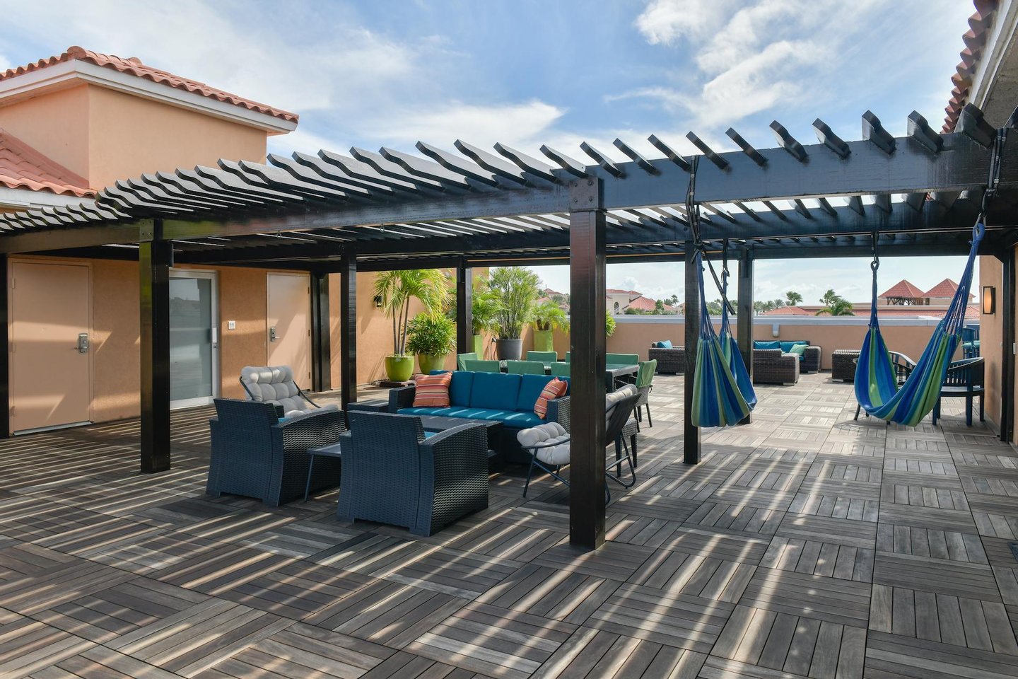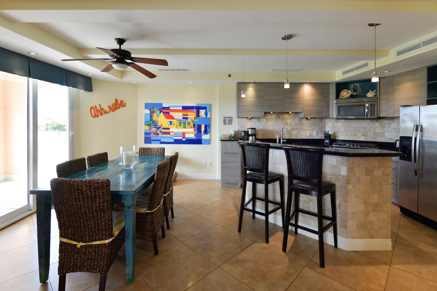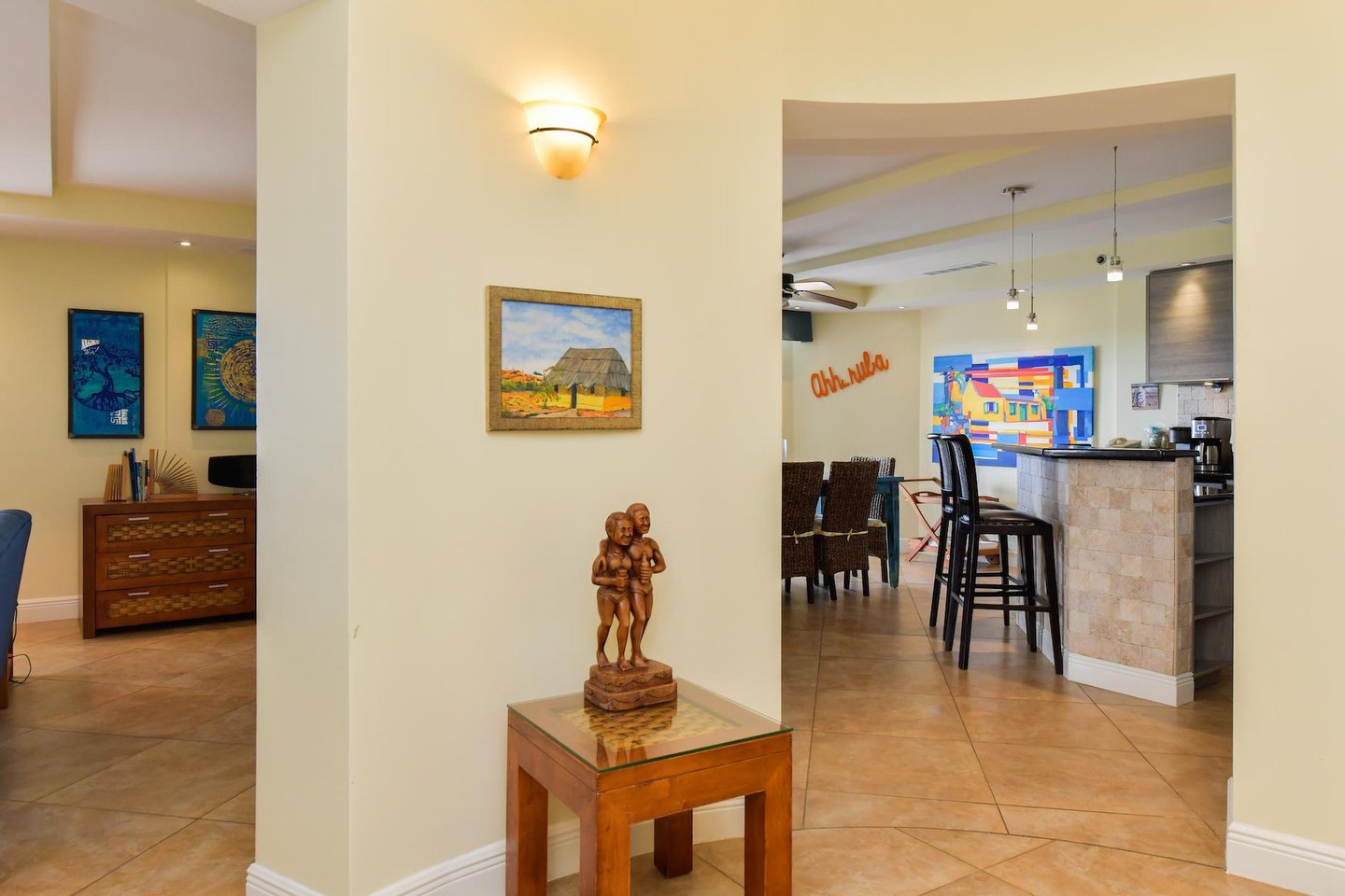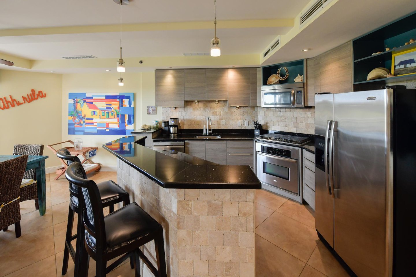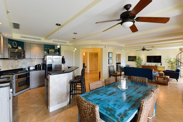 Erstklassige Lage in der Nähe von Eagle Beach Dieses Penthouse befindet sich in einem von nur drei exklusiven Eigentumswohnungen und bietet einfachen Zugang zum preisgekrönten Eagle Beach von Aruba, der für seinen unberührten weißen Sand und sein türkisfarbenes Wasser bekannt ist. Genießen Sie den Komfort von Restaurants, Einkaufsmöglichkeiten und Attraktionen in der Nähe, während Sie Zugang zu erstklassigen Resort-Annehmlichkeiten haben.
