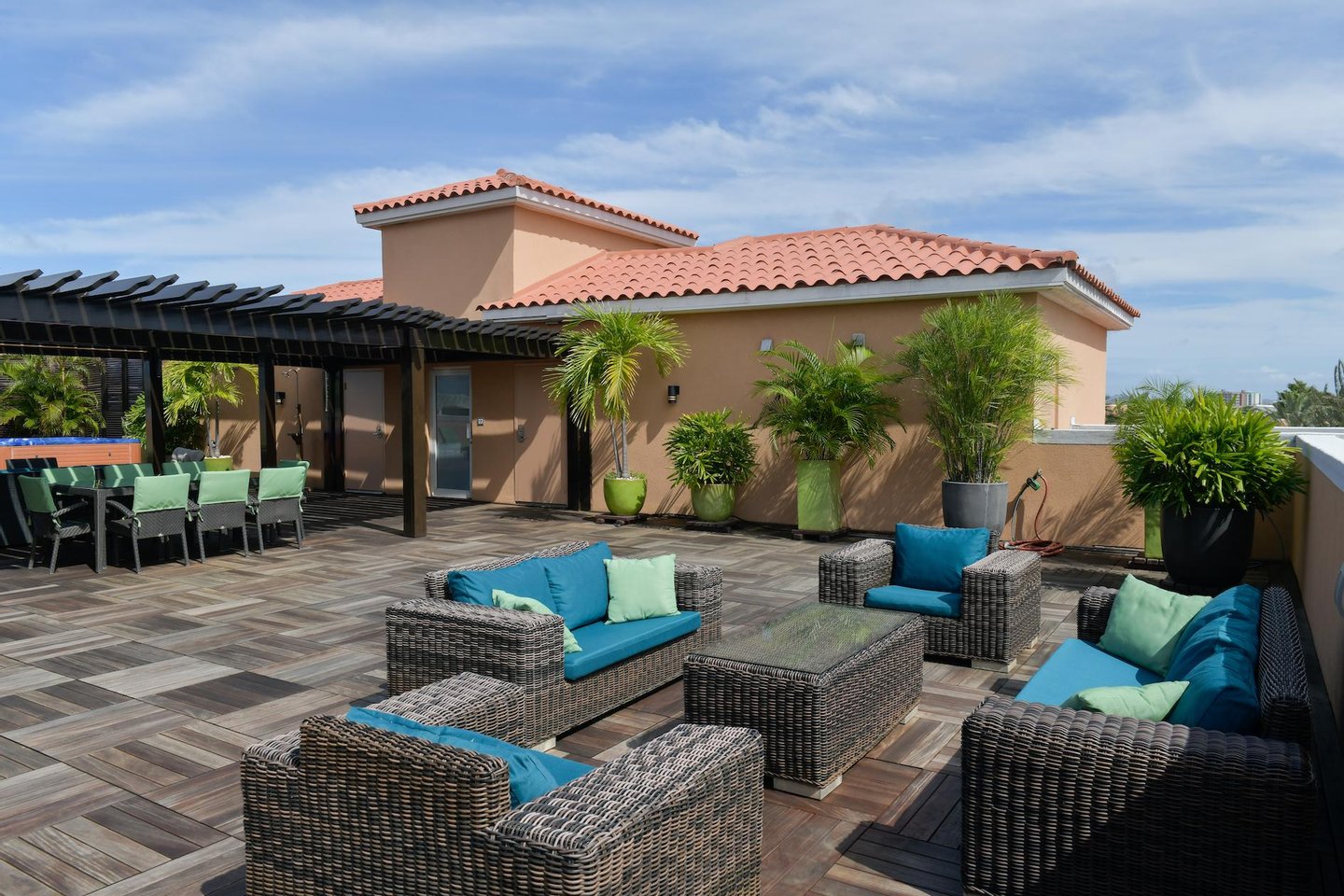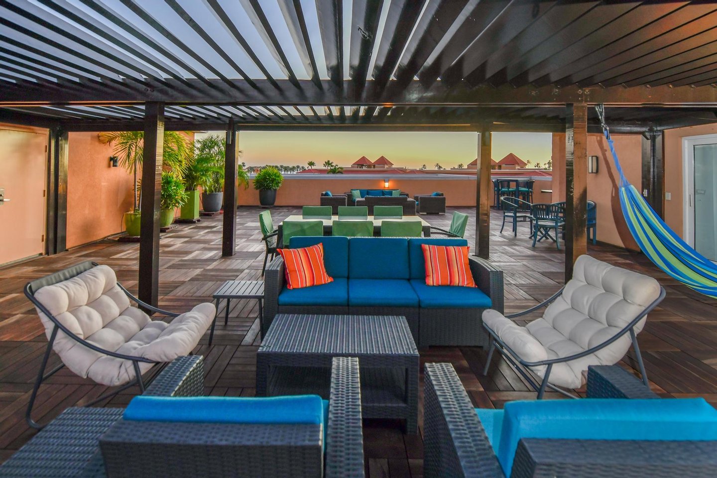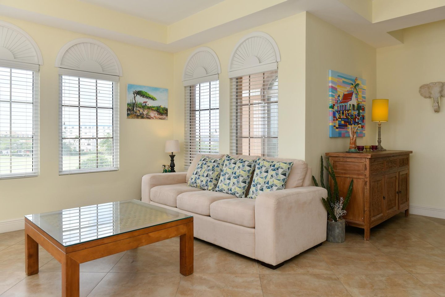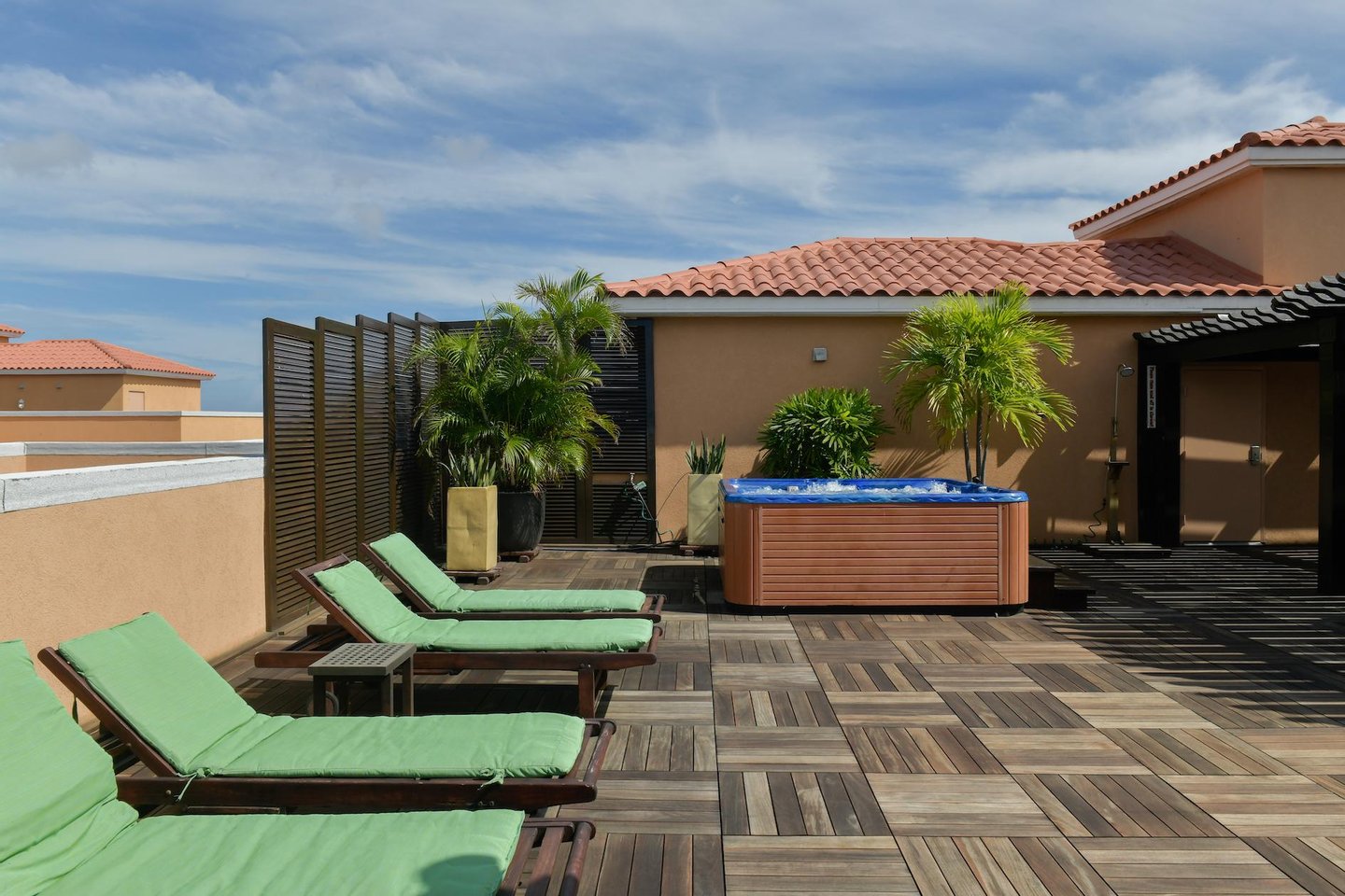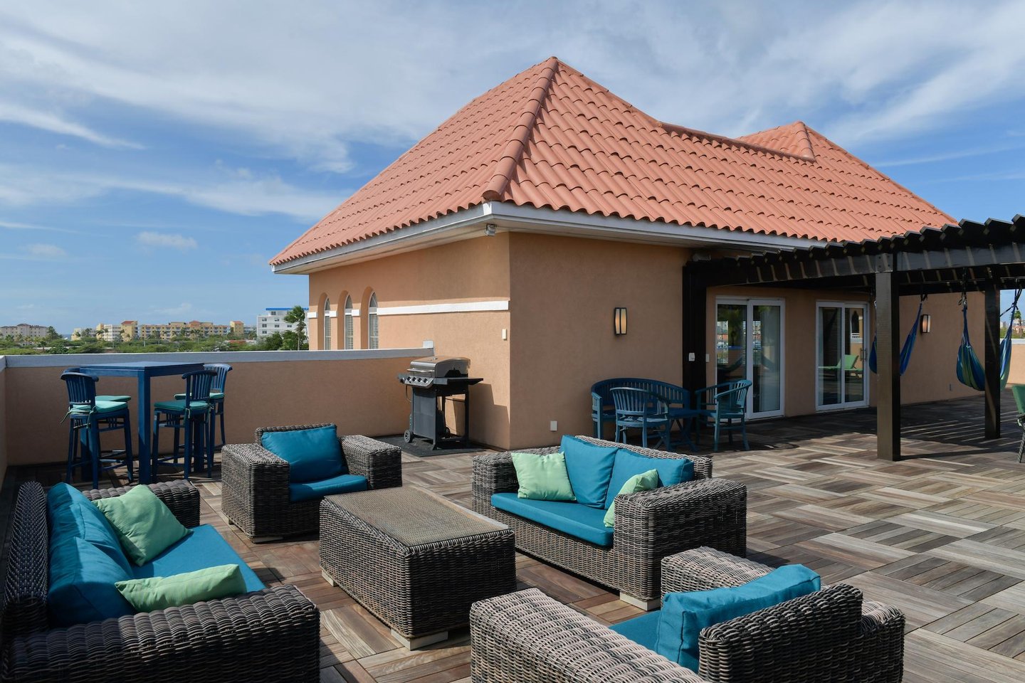 Erstklassige Lage in der Nähe von Eagle Beach Dieses Penthouse befindet sich in einem von nur drei exklusiven Eigentumswohnungen und bietet einfachen Zugang zum preisgekrönten Eagle Beach von Aruba, der für seinen unberührten weißen Sand und sein türkisfarbenes Wasser bekannt ist. Genießen Sie den Komfort von Restaurants, Einkaufsmöglichkeiten und Attraktionen in der Nähe, während Sie Zugang zu erstklassigen Resort-Annehmlichkeiten haben.