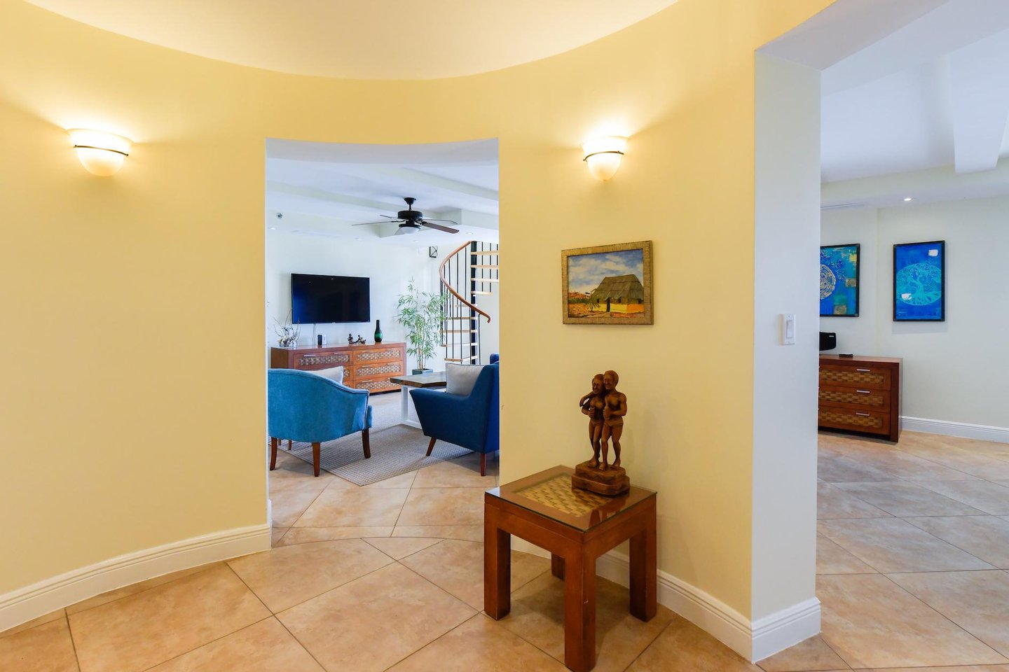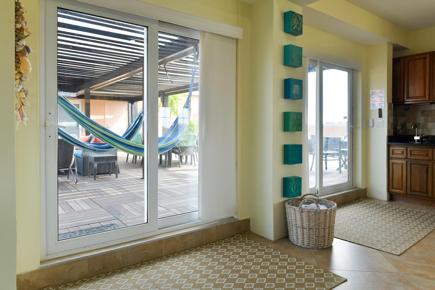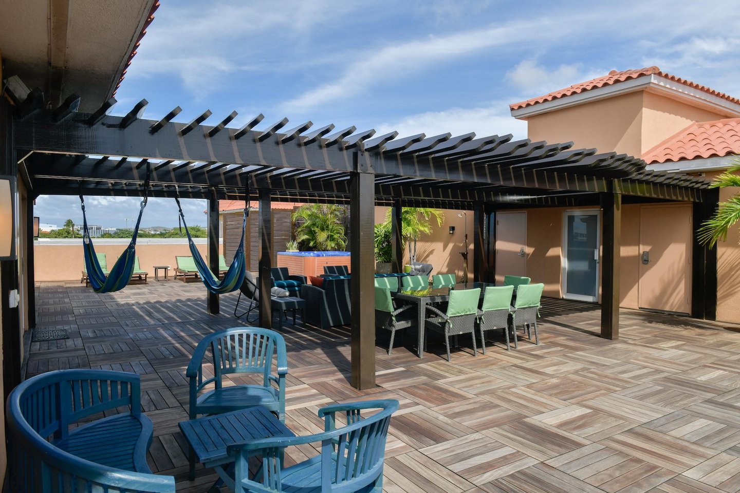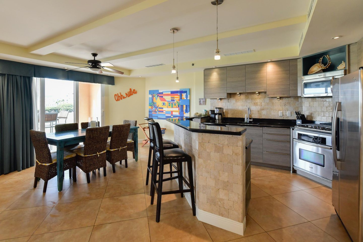 Erstklassige Lage in der Nähe von Eagle Beach Dieses Penthouse befindet sich in einem von nur drei exklusiven Eigentumswohnungen und bietet einfachen Zugang zum preisgekrönten Eagle Beach von Aruba, der für seinen unberührten weißen Sand und sein türkisfarbenes Wasser bekannt ist. Genießen Sie den Komfort von Restaurants, Einkaufsmöglichkeiten und Attraktionen in der Nähe, während Sie Zugang zu erstklassigen Resort-Annehmlichkeiten haben.