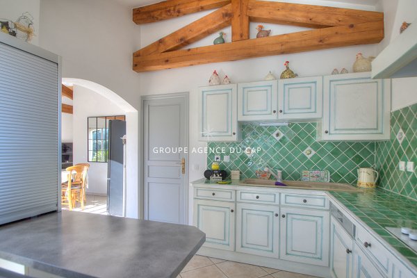 Eingeschossige Villa, ideal am Meer gelegen, bietet eine privilegierte Wohnumgebung. Sie liegt 300 m vom Stadtzentrum und 600 m vom Strand entfernt.
