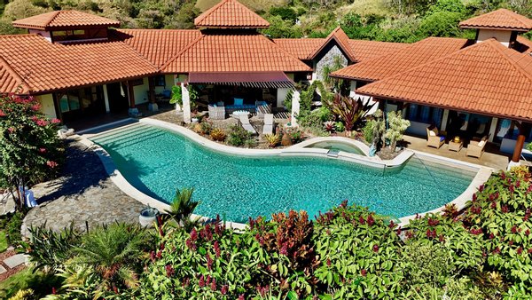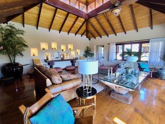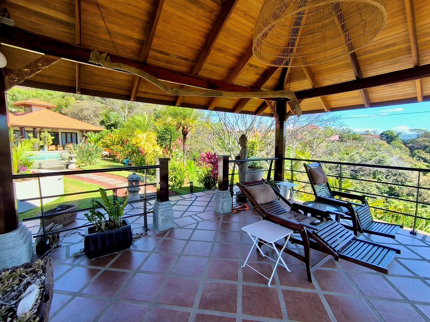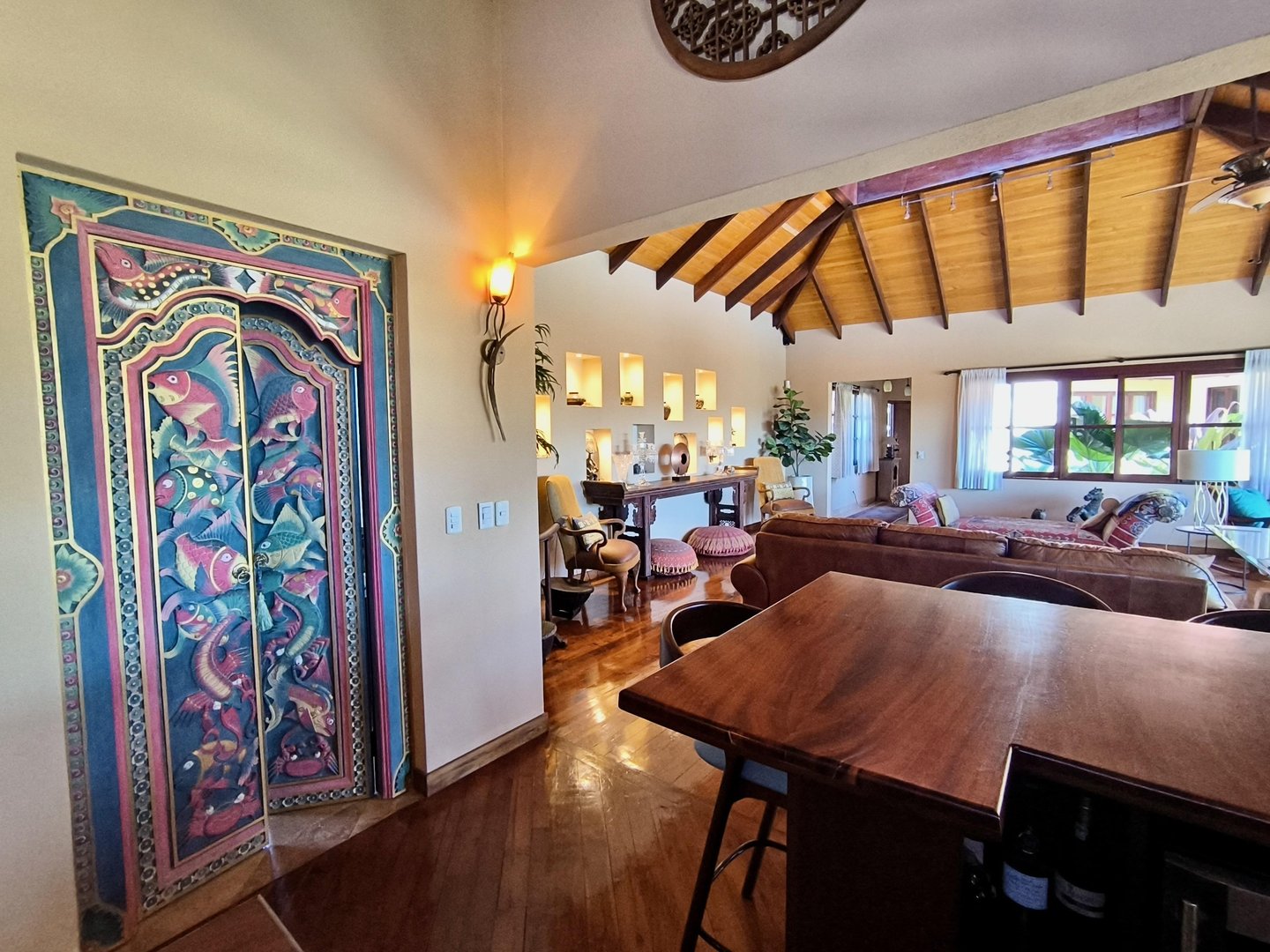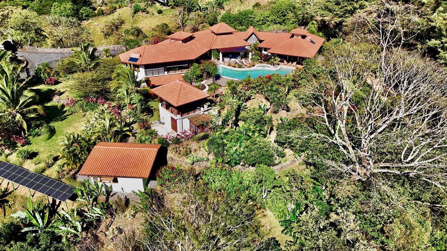 Treten Sie ein in eine Welt der Eleganz, Gelassenheit und Verbundenheit mit der Natur in diesem außergewöhnlichen 14.000 m² großen Anwesen in Atenas. Dieses Haus verbindet balinesische Inspiration mit außergewöhnlicher Handwerkskunst und bietet eine seltene Gelegenheit, Luxus und Ruhe in perfekter Harmonie mit seiner üppigen Umgebung zu erleben. Das Haupthaus verfügt über ein zentrales Wohnzimmer mit hohen Decken und Panoramafenstern, eine voll ausgestattete Gourmetküche, ein raffiniertes Esszimmer und mehrere überdachte Terrassen. Die Master-Suite verfügt über zwei Badezimmer, zwei Ankleidezimmer, eine private Terrasse und direkten Zugang zum halbmondförmigen Salzwasserpool. Die untere Ebene bietet einen unabhängigen Gästebereich mit zwei Schlafzimmern und zwei Bädern, die den Besuchern Privatsphäre bieten.
