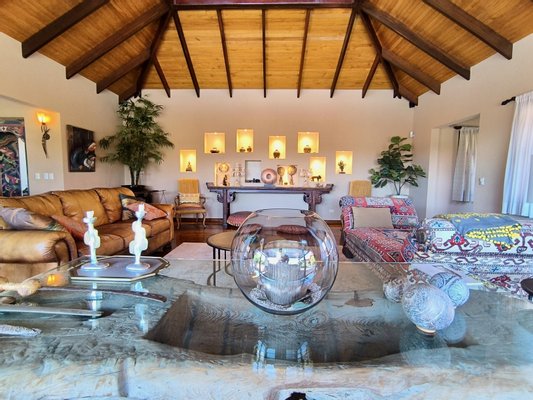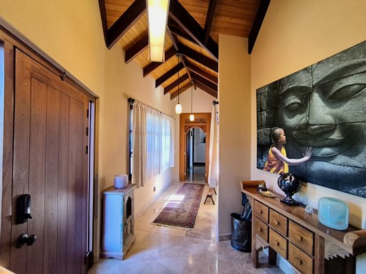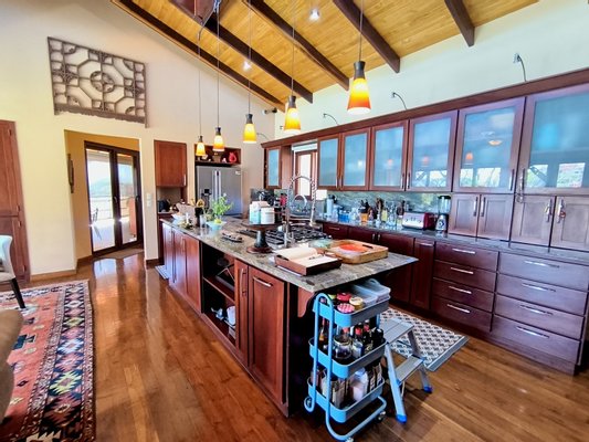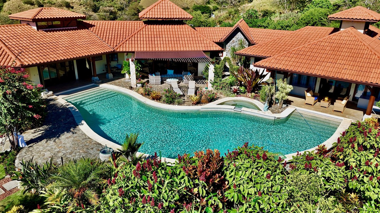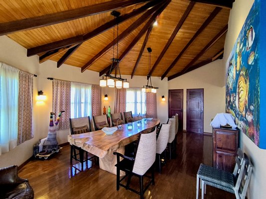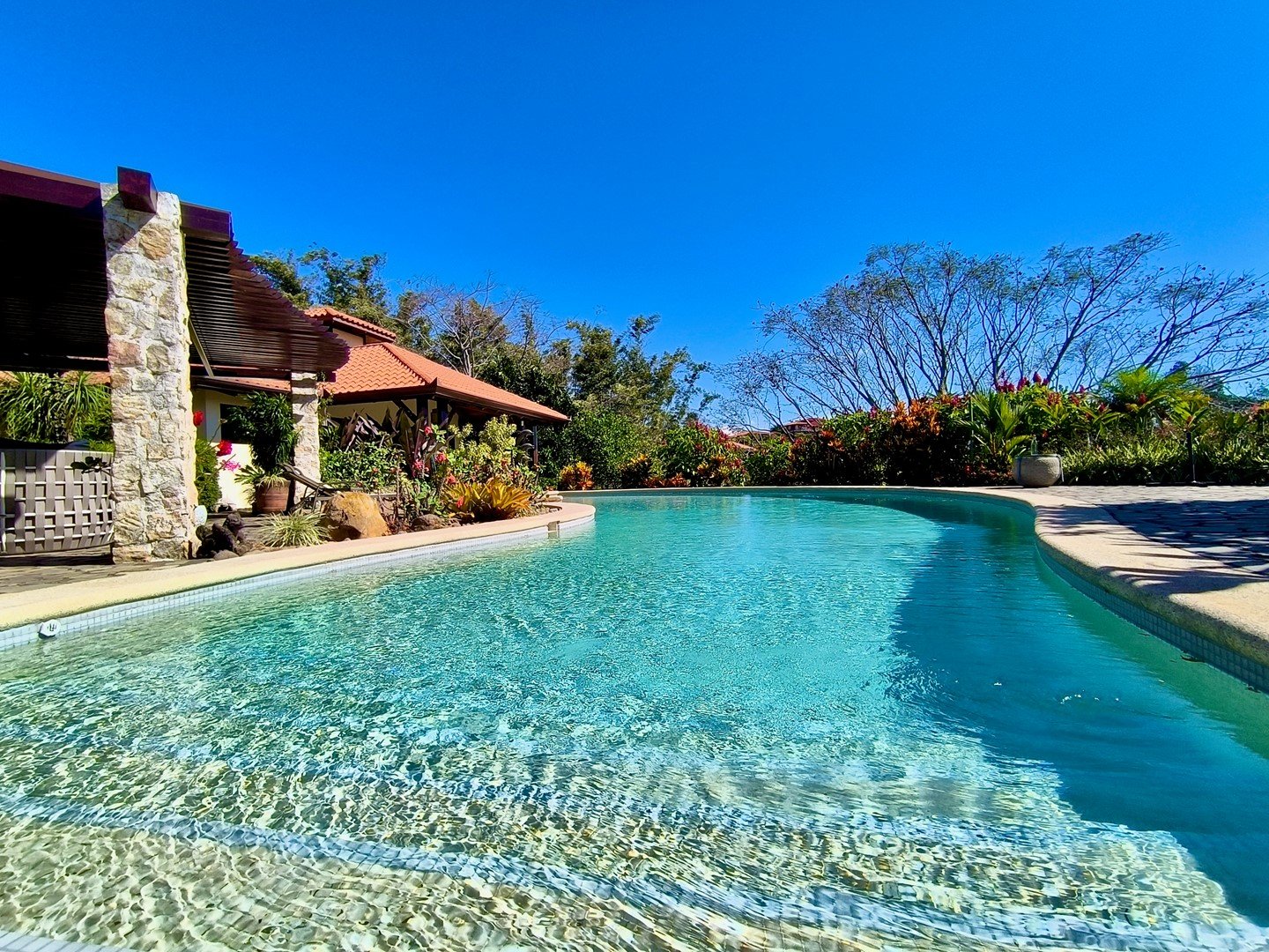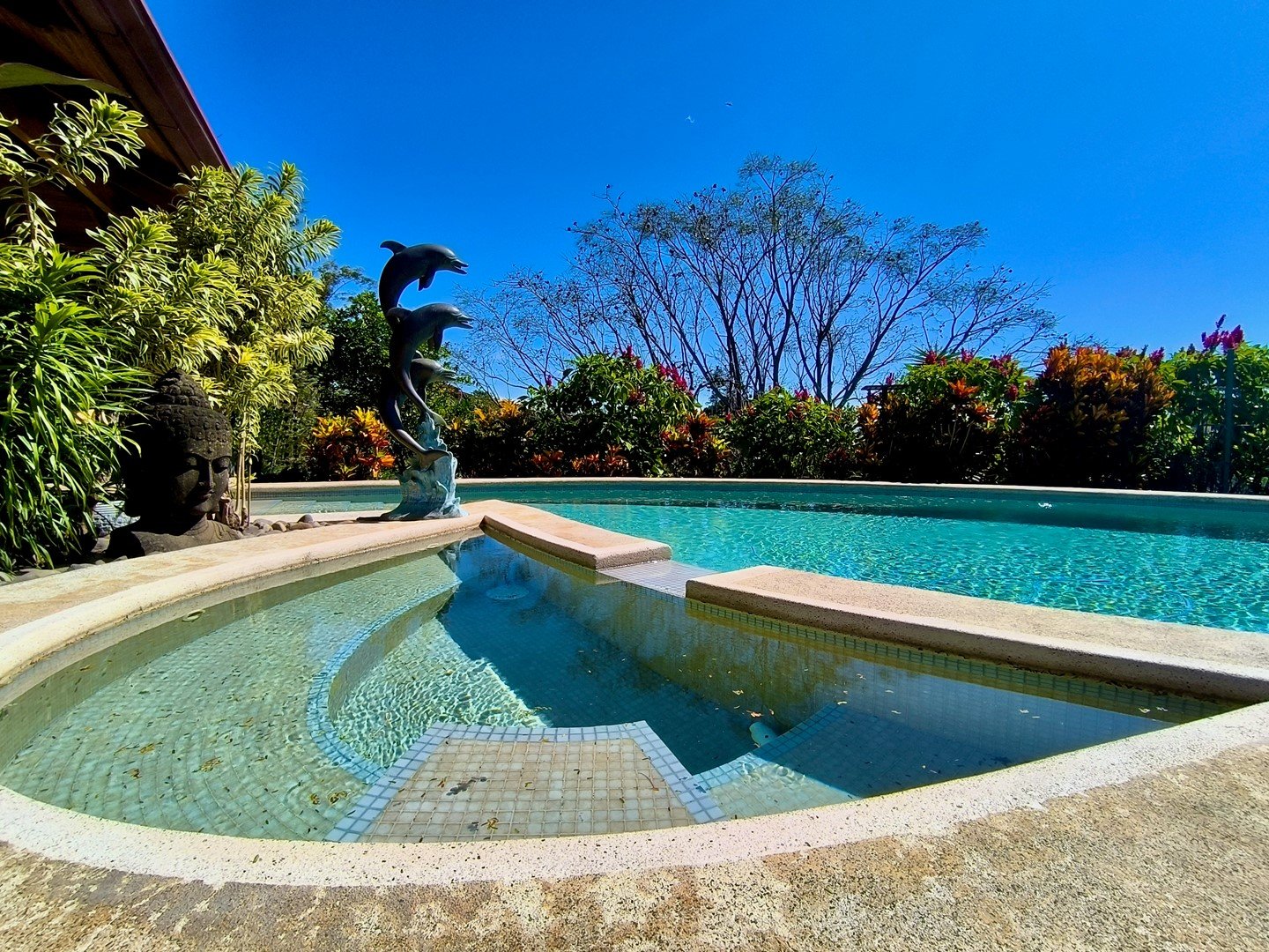 Treten Sie ein in eine Welt der Eleganz, Gelassenheit und Verbundenheit mit der Natur in diesem außergewöhnlichen 14.000 m² großen Anwesen in Atenas. Dieses Haus verbindet balinesische Inspiration mit außergewöhnlicher Handwerkskunst und bietet eine seltene Gelegenheit, Luxus und Ruhe in perfekter Harmonie mit seiner üppigen Umgebung zu erleben. Das Haupthaus verfügt über ein zentrales Wohnzimmer mit hohen Decken und Panoramafenstern, eine voll ausgestattete Gourmetküche, ein raffiniertes Esszimmer und mehrere überdachte Terrassen. Die Master-Suite verfügt über zwei Badezimmer, zwei Ankleidezimmer, eine private Terrasse und direkten Zugang zum halbmondförmigen Salzwasserpool. Die untere Ebene bietet einen unabhängigen Gästebereich mit zwei Schlafzimmern und zwei Bädern, die den Besuchern Privatsphäre bieten.