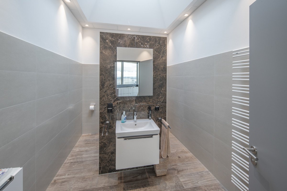 Die Decken sind mit Heiz- und Kühl-Deckensegeln über ein umweltfreundliches Geothermie-System ausgestattet, was für optimalen Komfort sorgt. Eine Belüftungs- und Luftbefeuchtungsanlage ist ebenfalls installiert.