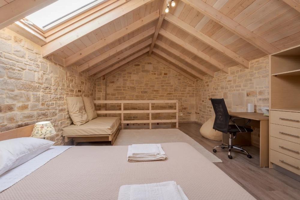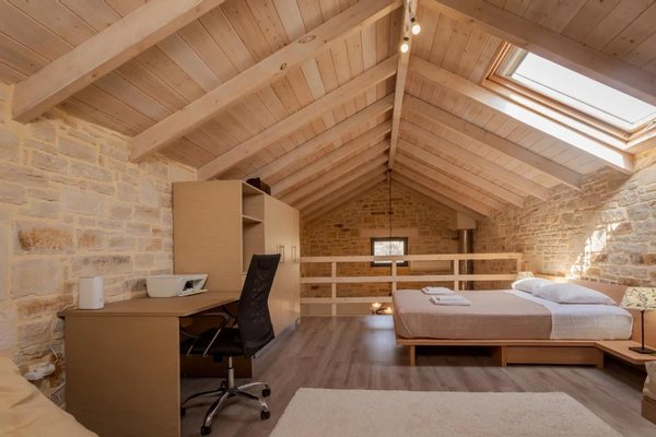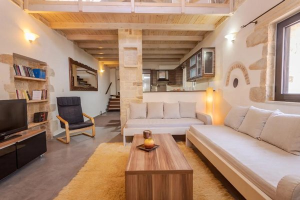 Diese Maisonette-Wohnung zum Verkauf in Platanias, Chania, Kreta, befindet sich im ruhigen Dorf Manoliopoulo. Sie verfügt über eine Gesamtwohnfläche von 85 m² und steht auf einem 200 m² großen Privatgrundstück. Sie erstreckt sich über zwei Ebenen und besteht aus einem Schlafzimmer und einem Badezimmer. Das Erdgeschoss umfasst eine hochwertige Einbauküche mit allen Elektrogeräten und ein gemütliches Wohnzimmer mit Kamin. Es gibt auch ein modernes Badezimmer mit ebenerdiger Dusche. Im Obergeschoss befindet sich ein Zwischengeschoss mit einem geräumigen Bett, einem Schreibtisch und einem Schlafsofa mit einem großen Fenster an der Decke. Das Anwesen hat einen traditionellen Charakter mit Stein- und Holzdetails in den Wänden und der Decke.