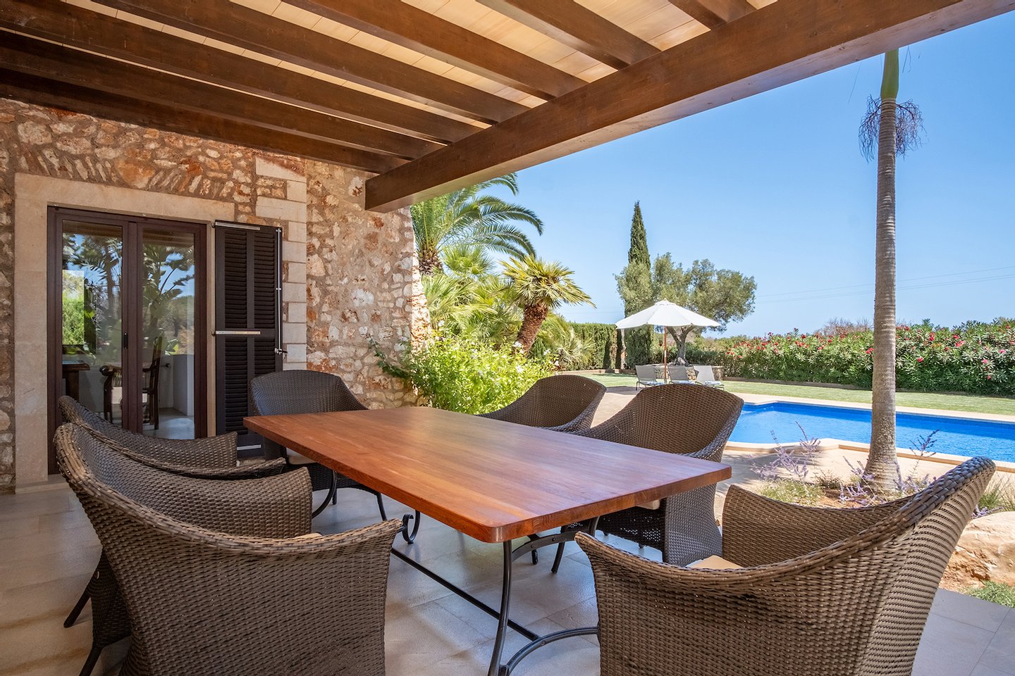Das Anwesen besticht durch seine hohe Bauqualität und den mediterranen Charme mit beeindruckender Raumhöhe. Rustikale Elemente betonen den mallorquinischen Stil und schaffen eine harmonische Atmosphäre, die zum Verweilen einlädt.