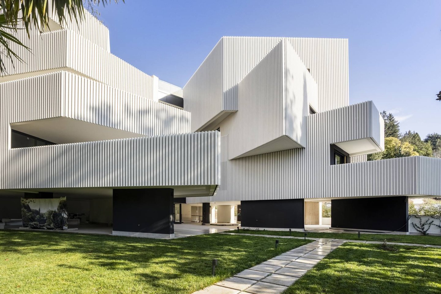 Das Gebäude ist von einem privaten Park von fast 4.000 m² umgeben, einer grünen Oase, die Spazierwege und Bereiche für Entspannung und körperliche Aktivitäten bietet, sowie eine gemeinsame Fläche von etwa 400 m² überdachten Raums.