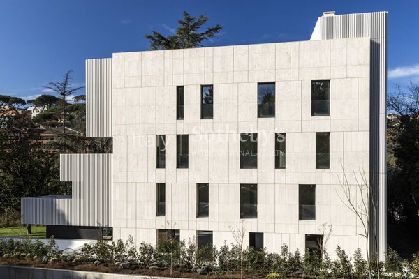 Eingebettet im Grün von Monte Mario, einem Hügel, der das historische Zentrum von Rom und den Vatikan überragt, ist die Camilluccia eines der exklusivsten Viertel Roms: eine Wohngegend, die in Ruhe gehüllt ist und gleichzeitig Teil des pulsierenden Herzens der Stadt darstellt. Dieses Gebäude, entworfen von dem renommierten Studio Transit, stellt eine perfekte Synthese aus Eleganz, Nachhaltigkeit und Wohnkomfort dar.