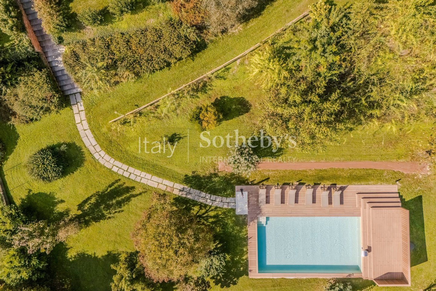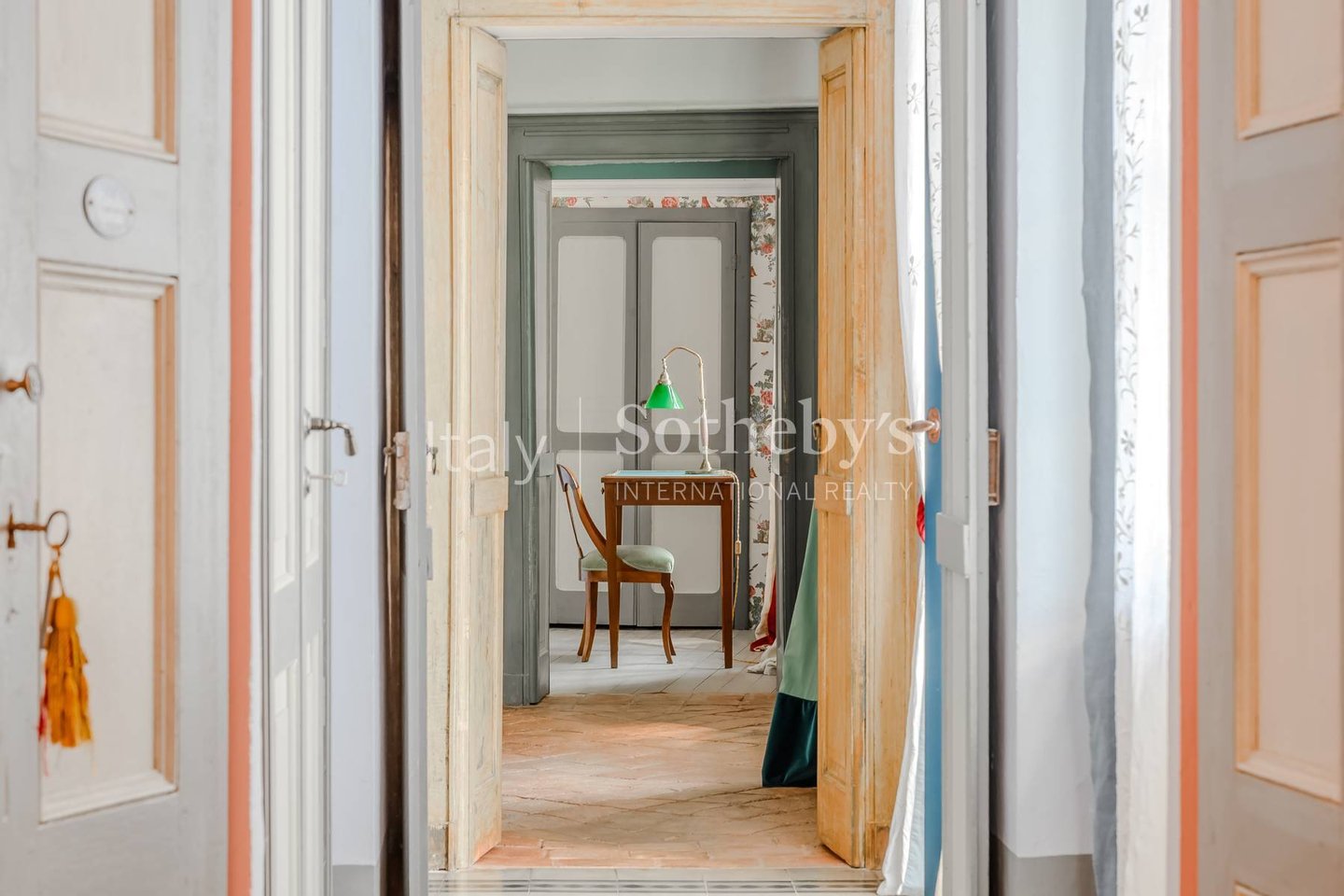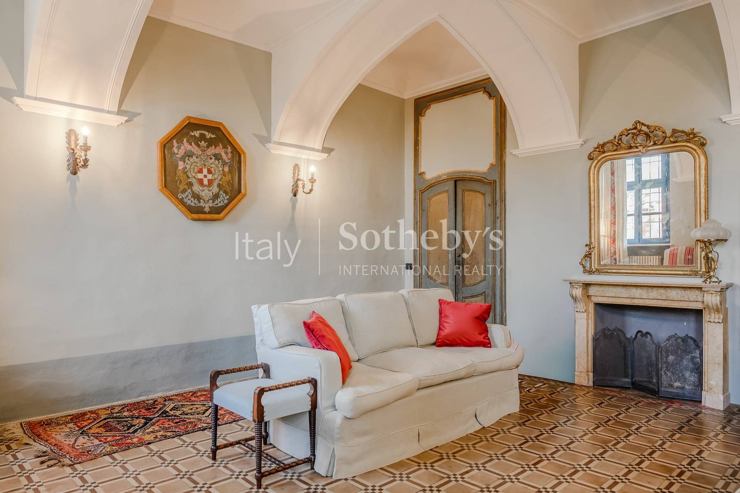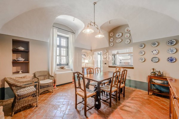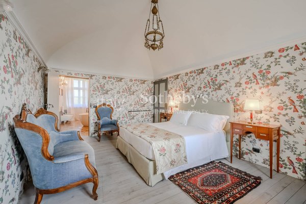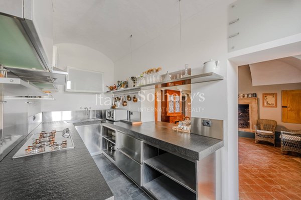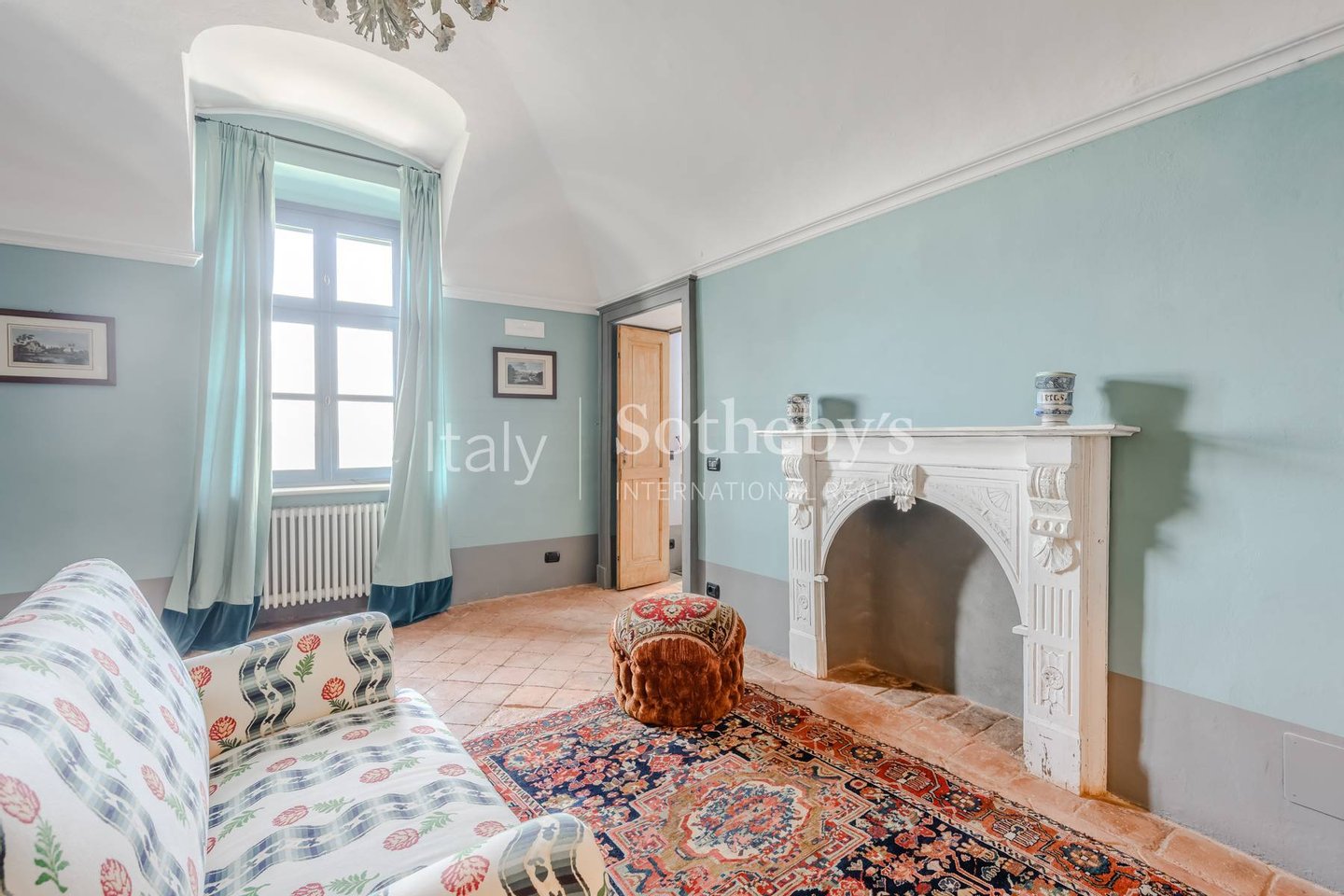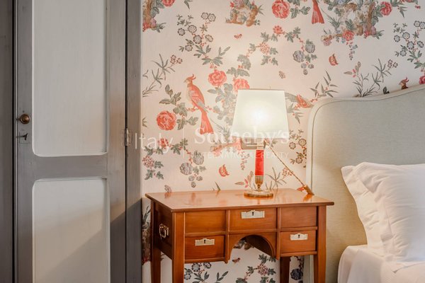 Das Haus, das geschickt restauriert wurde, bewahrt die Spuren der Vergangenheit: die originalen Böden, die Keller mit antiken Fässern, ein authentisches Infernotto, das in den Felsen gehauen wurde, und ein üppiger Garten, in dem Blumen, Kräuter und eine imposante Weide in Harmonie miteinander gedeihen. Auf drei Ebenen verteilt, bietet das Haus großzügige und lichtdurchflutete Räume: vier Salons - einer davon mit Blick auf eine panoramische Veranda -, gesellige Bereiche und sieben Schlafzimmer, jeweils mit eigenem Bad. Draußen bietet der kürzlich errichtete Pool ruhige Momente mit einem unvergleichlichen Blick auf die Hügel.