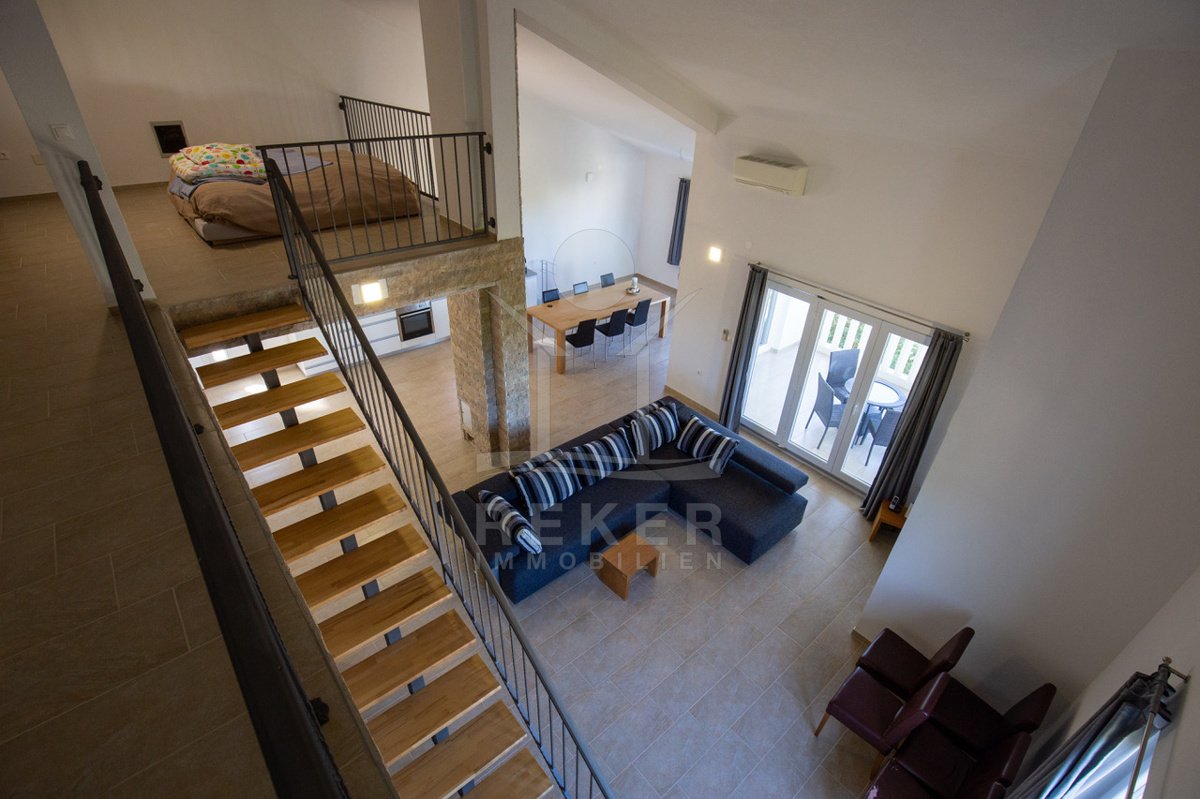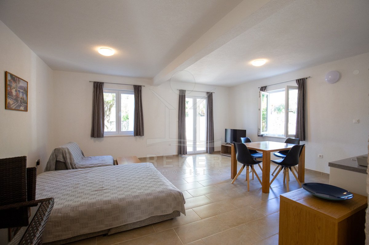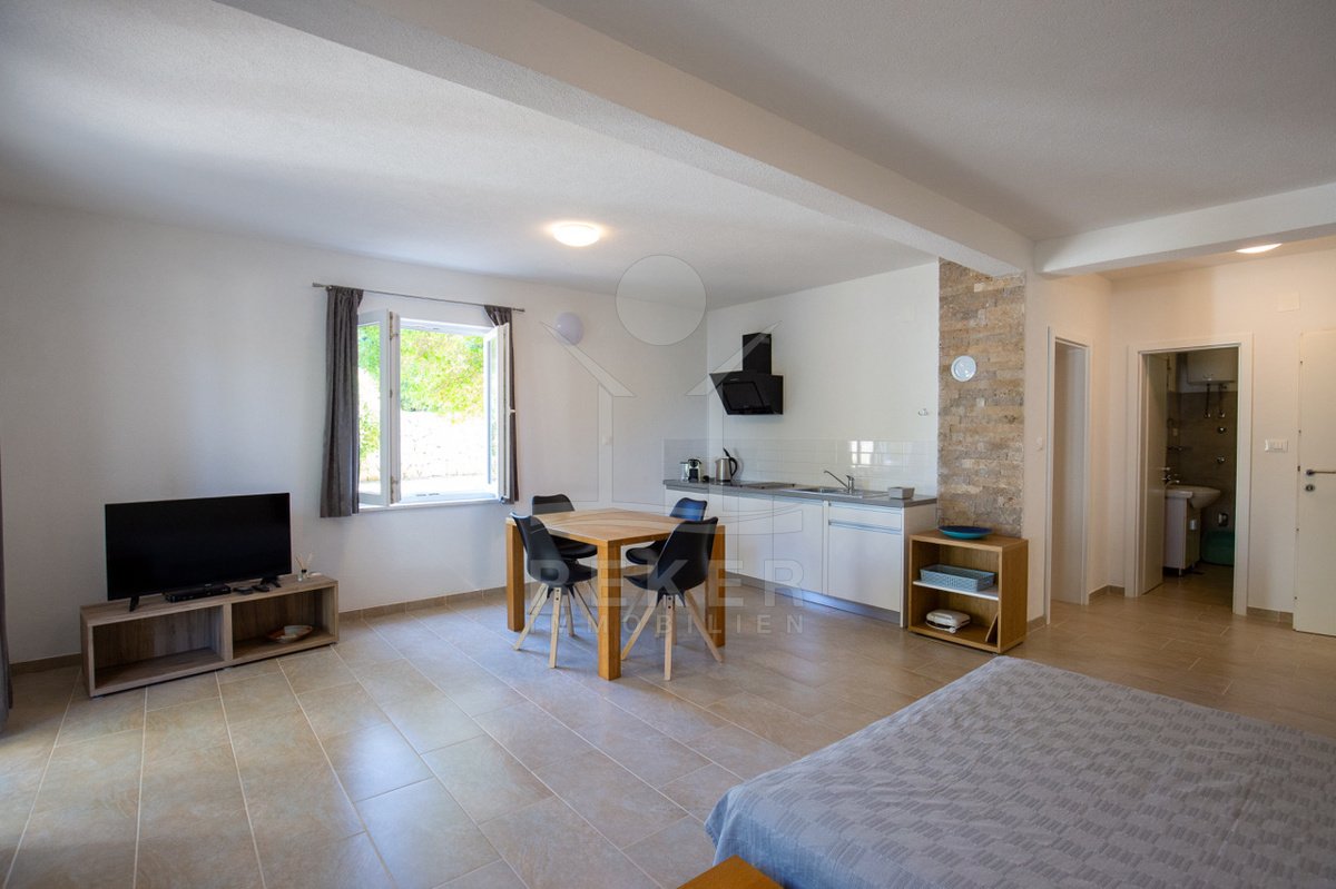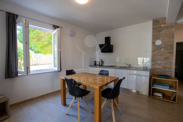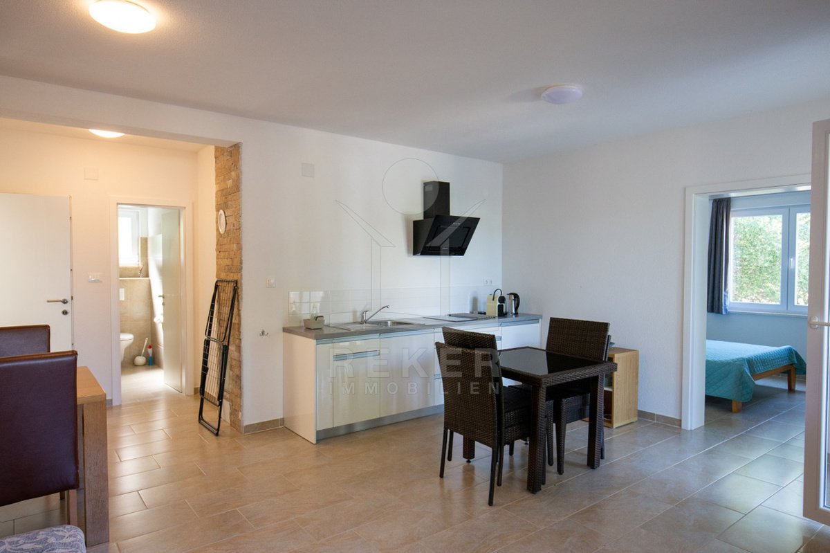 Nur 130 Meter vom Meer entfernt: Dieses charmante Apartmenthaus auf Pag vereint mediterranen Gartenflair mit drei voll ausgestatteten Wohneinheiten. Ideal für Familien, Vermietung oder ruhiges Inselleben.