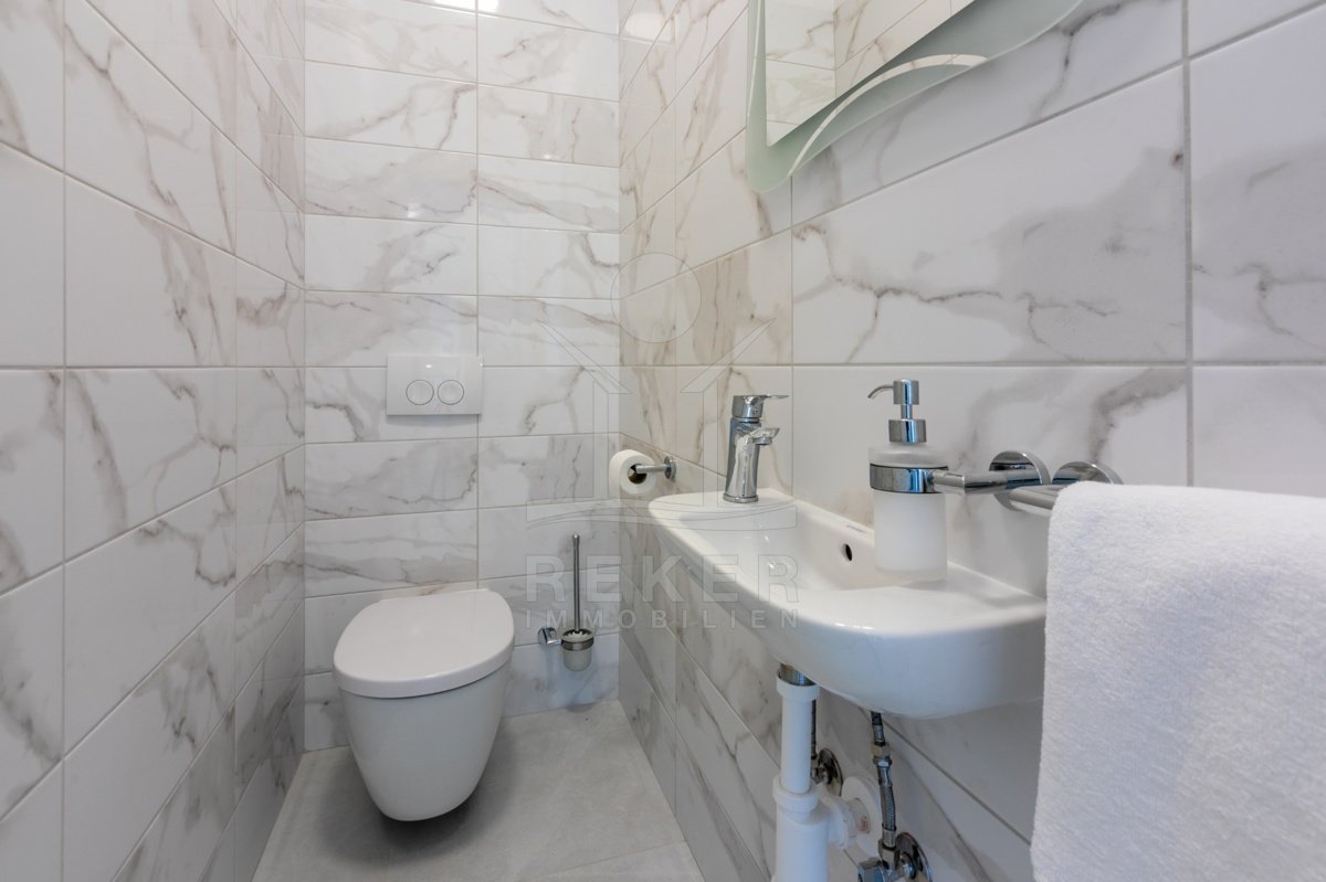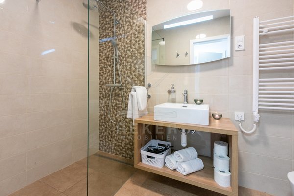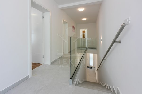 Grüne Ruhe statt Küstenrummel. Diese Villa steht in Grižane, im Hinterland von Crikvenica. Drumherum: Wald, Natur, ein paar Nachbarn – sonst nichts. Die Umgebung ist locker bebaut. Eine Steinmauer zieht die Grenze, hält Sicht und Trubel fern. Die Zufahrt? Kein Problem. Drei Autos finden im Hof ihren Platz.