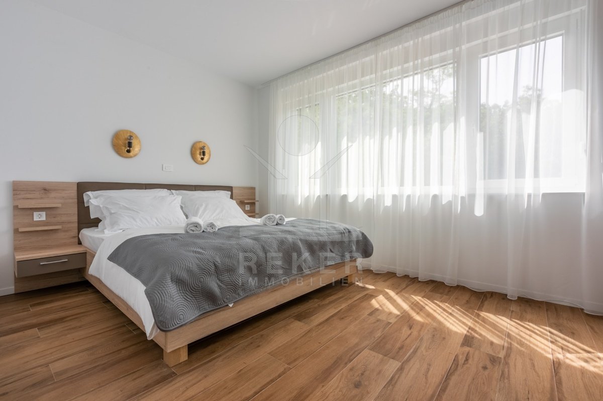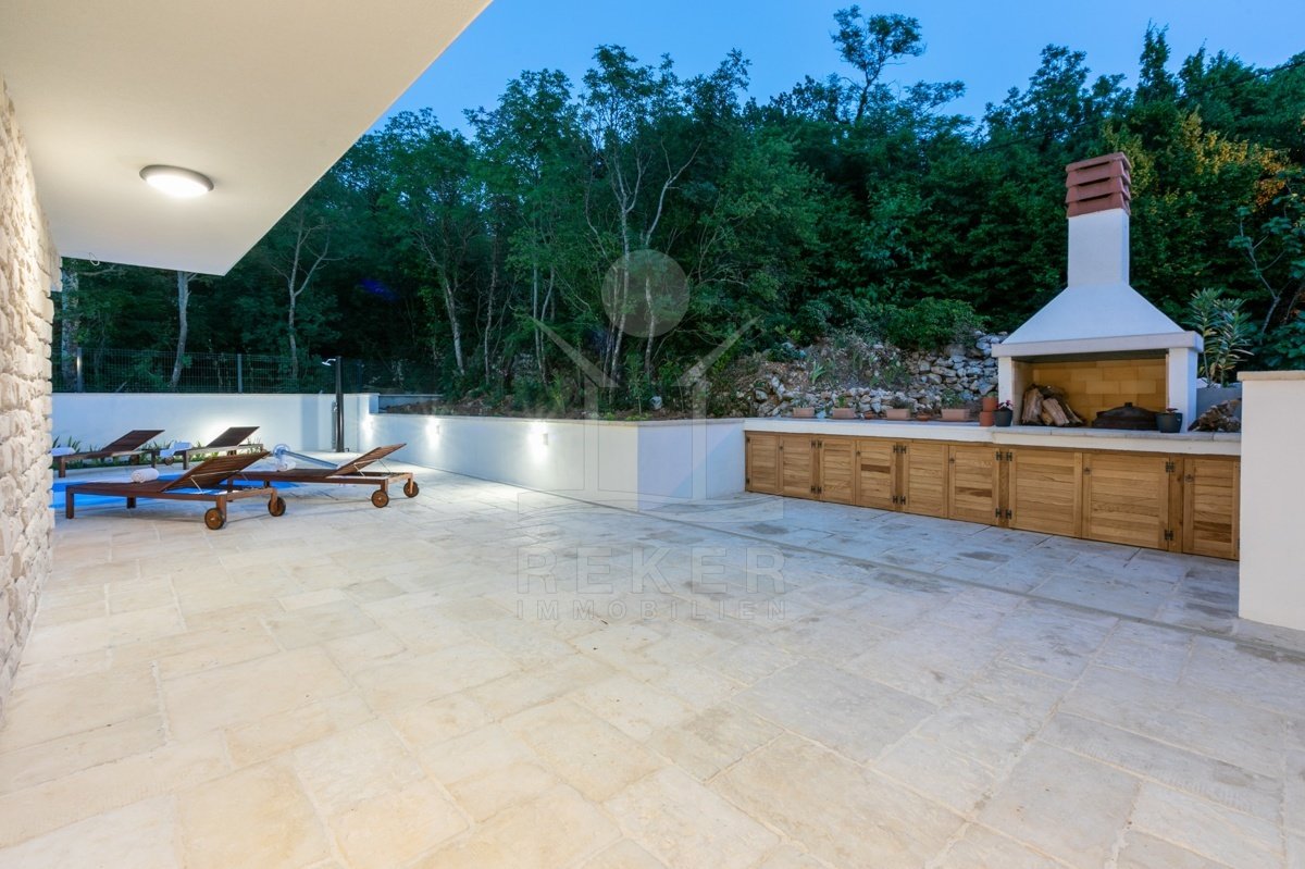 Grüne Ruhe statt Küstenrummel. Diese Villa steht in Grižane, im Hinterland von Crikvenica. Drumherum: Wald, Natur, ein paar Nachbarn – sonst nichts. Die Umgebung ist locker bebaut. Eine Steinmauer zieht die Grenze, hält Sicht und Trubel fern. Die