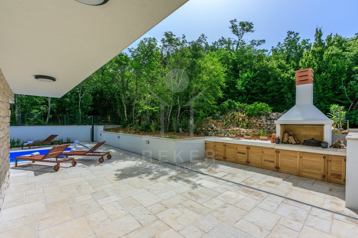 Hier hören Sie Vögel statt Verkehr. Diese stilvolle Villa verbindet modernes Design mit natürlicher Umgebung – mit Pool, Steingrill, Sonnendeck und viel Raum für Leben. Ihr Rückzugsort wartet.