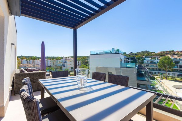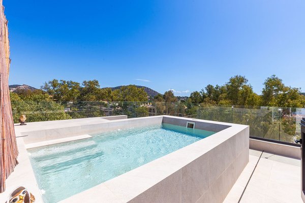 Das attraktive Penthaus punktet mit hochwertiger Ausstattung und gut durchdachter Raumaufteilung. Das Highlight der Wohnung ist die geräumige Dachterrasse mit eigenem Swimmingpool, gemütlicher Chillout-Area und wunderbarem Panoramablick auf die umliegende Landschaft.