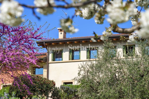 In einer dominanten und privaten Lage, in der prestigeträchtigen Hügelgegend im Nordosten von Verona, befindet sich dieses malerische Landhaus, umgeben von Grünflächen und mit offener Aussicht auf das Tal.