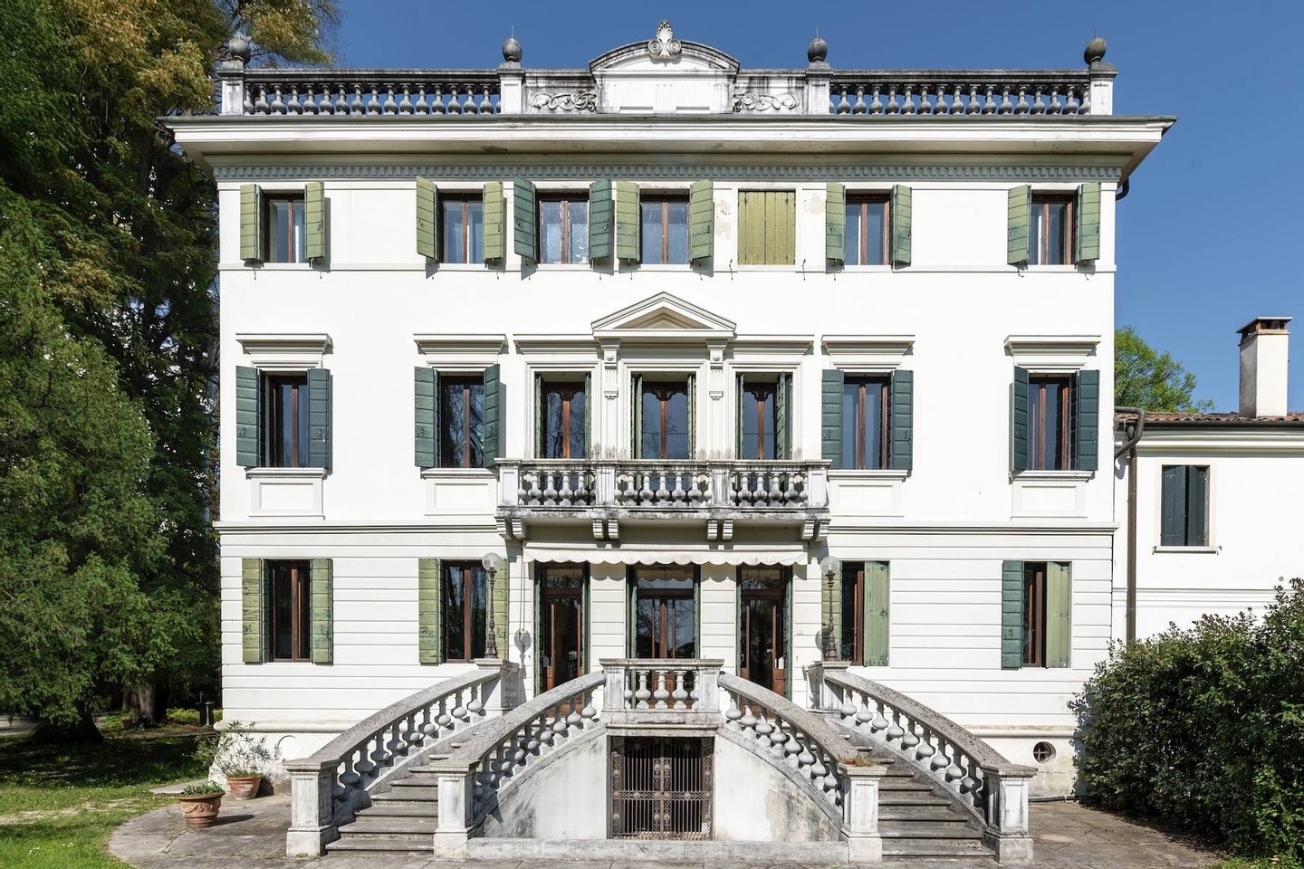 Die Privatsphäre wird durch den Park mit jahrhundertealten Bäumen, historischen Ornamenten und einem Hochwald mit Teich für sommerliche Spaziergänge bis hin zum großen Rasen mit Pool gewährleistet, der durch die Vegetation entlang der Grenzen geschützt ist und auch von der offenen Veranda, die zum Park führt, genossen werden kann. Eine exklusive Immobilie in einer ruhigen und abgelegenen Lage, nur wenige Minuten vom pulsierenden Herzen der Stadt entfernt, mit allen bequem erreichbaren Annehmlichkeiten.