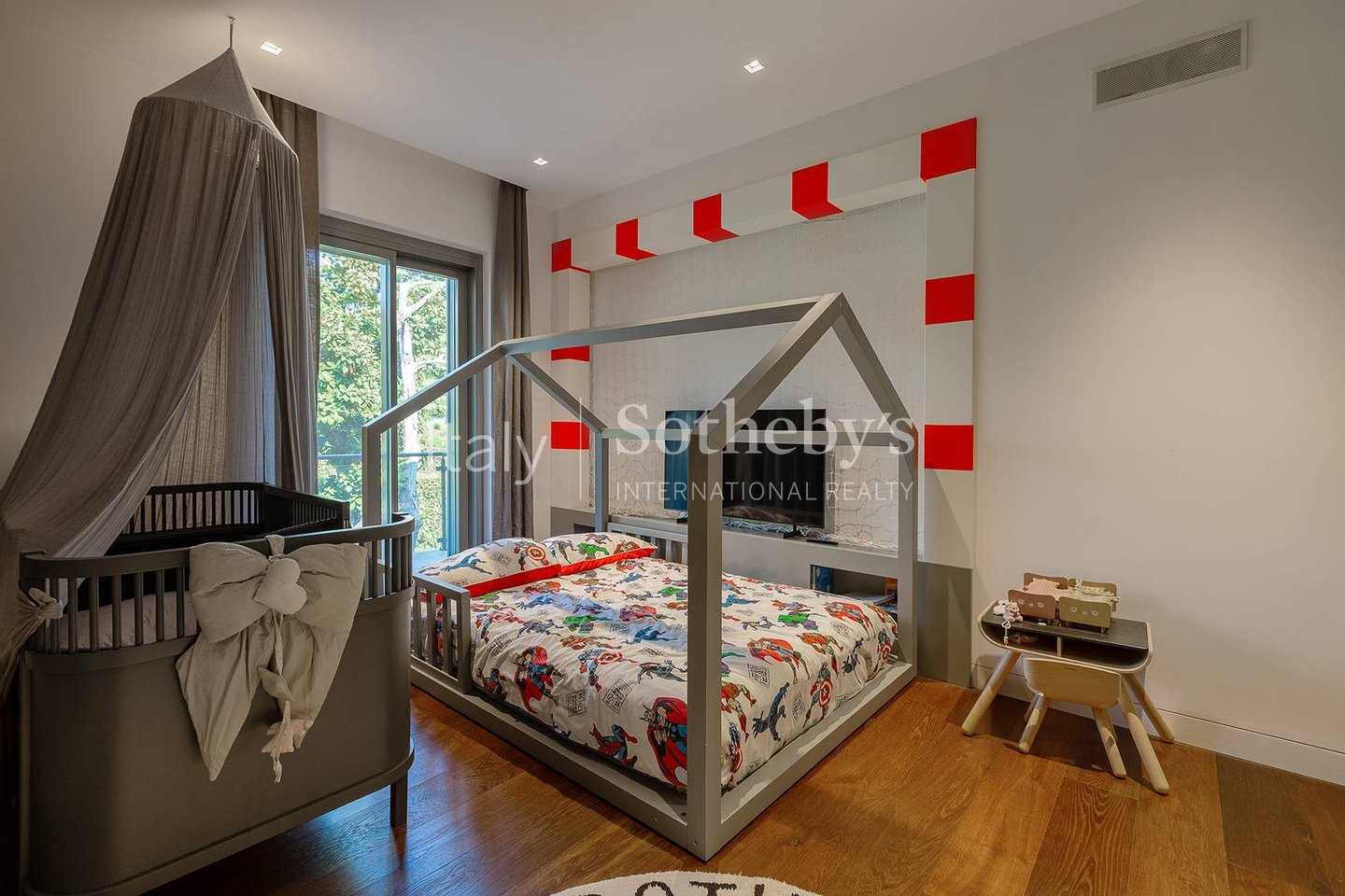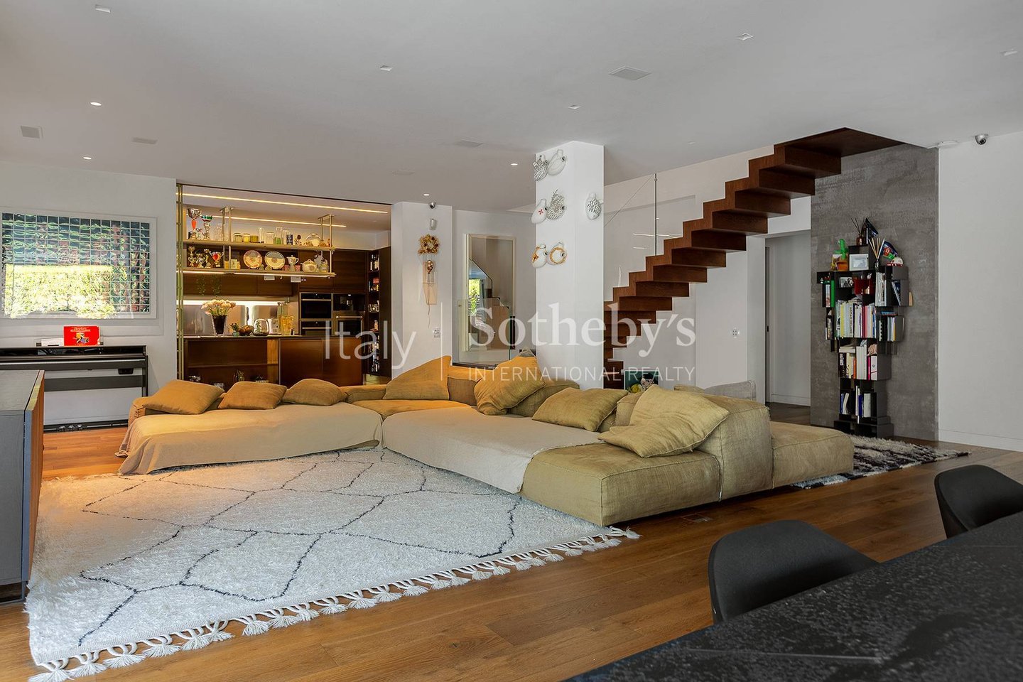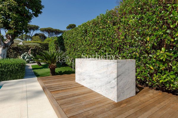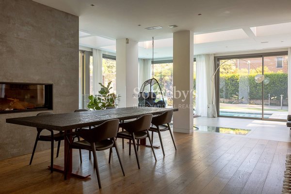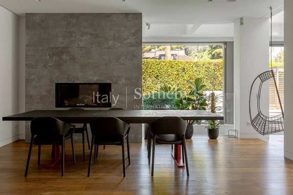 The interiors are exquisitely furnished with contemporary, high-end pieces, creating a refined, welcoming, and modern atmosphere. All systems are of superior standard, and the private garden accommodates two large car garages.