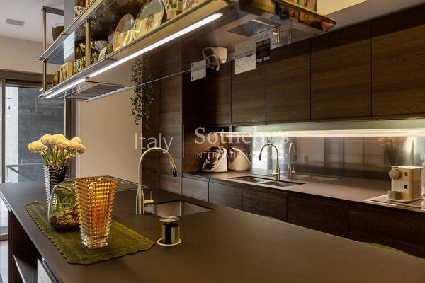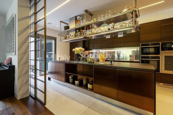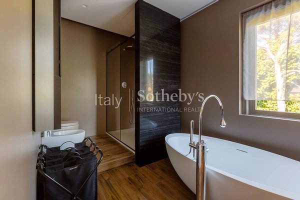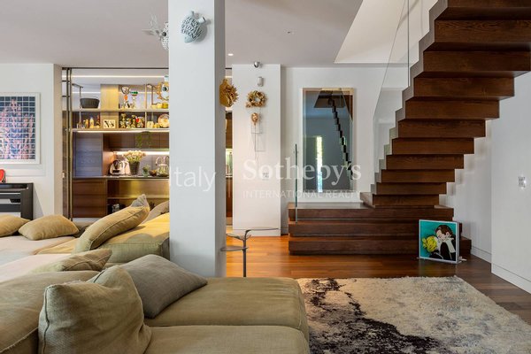 The upper floor hosts a grand master suite with walk-in closet and luxurious bathroom, as well as a second spacious bedroom with en suite bathroom; on the top floor, a third bedroom with private bathroom. All the bedroom have its own independent balcony.