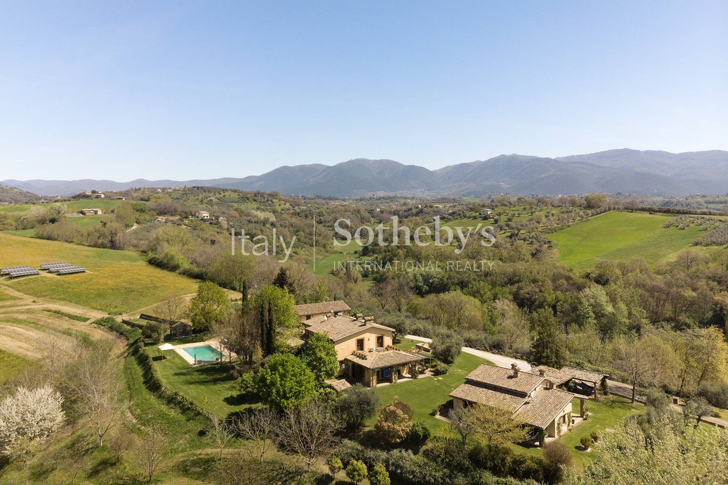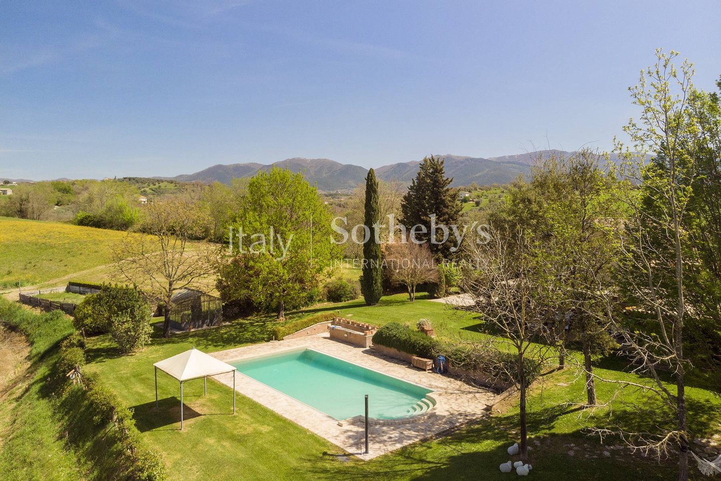 Diese exklusive Immobilie vereint den Charme der Landschaft mit einer ausgeprägten ökologischen Sensibilität. Sie befindet sich entlang der historischen Via Romana Vecchia, in der Nähe des berühmten Heiligtums von Santa Maria in Vescovio, und erstreckt sich über etwa sechs Hektar Land, durchzogen von einer beeindruckenden Allee aus Olivenbäumen, die zu Gärten, Obstplantagen und atemberaubenden Panoramen führt.